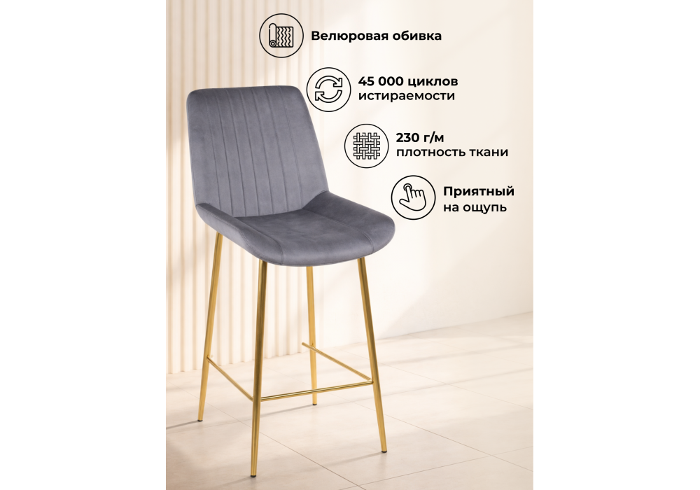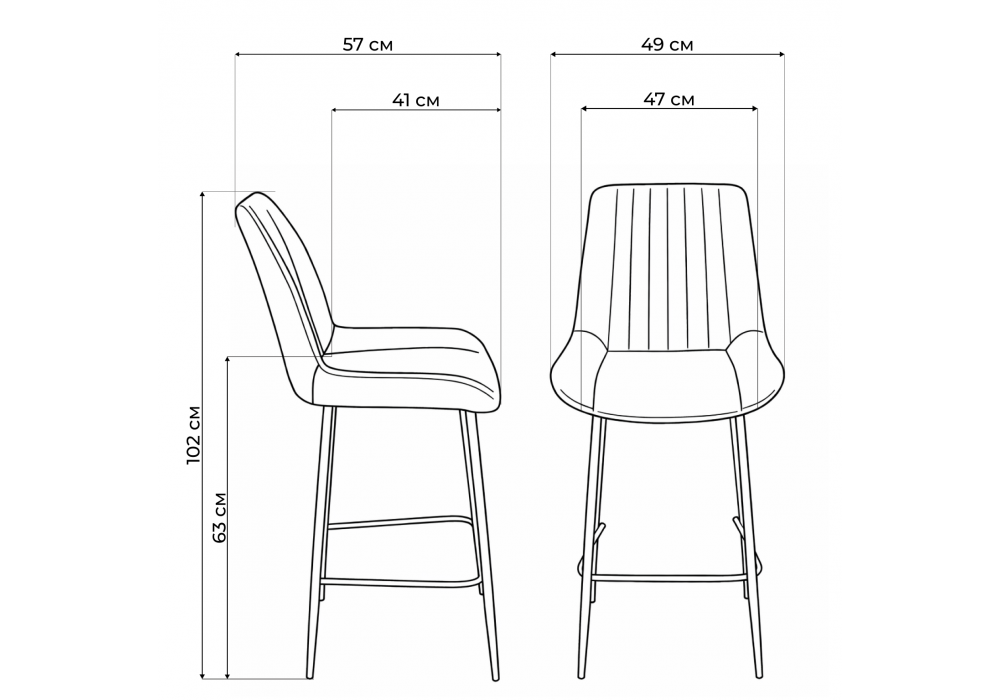 Материал каркаса - металл; Материал сиденья - велюр; Материал обивки - велюр; Ширина - 49; Глубина - 57; Высота - 102; Ширина сиденья - 47; Глубина сиденья - 41; Высота сиденья - 63;