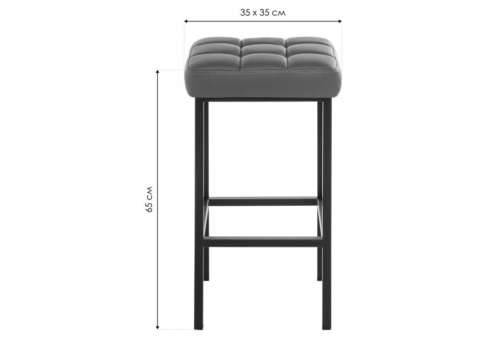 Материал каркаса - металл; Материал сиденья - искусственная кожа; Материал обивки - искусственная кожа; Ширина - 35; Глубина - 35; Высота - 65;