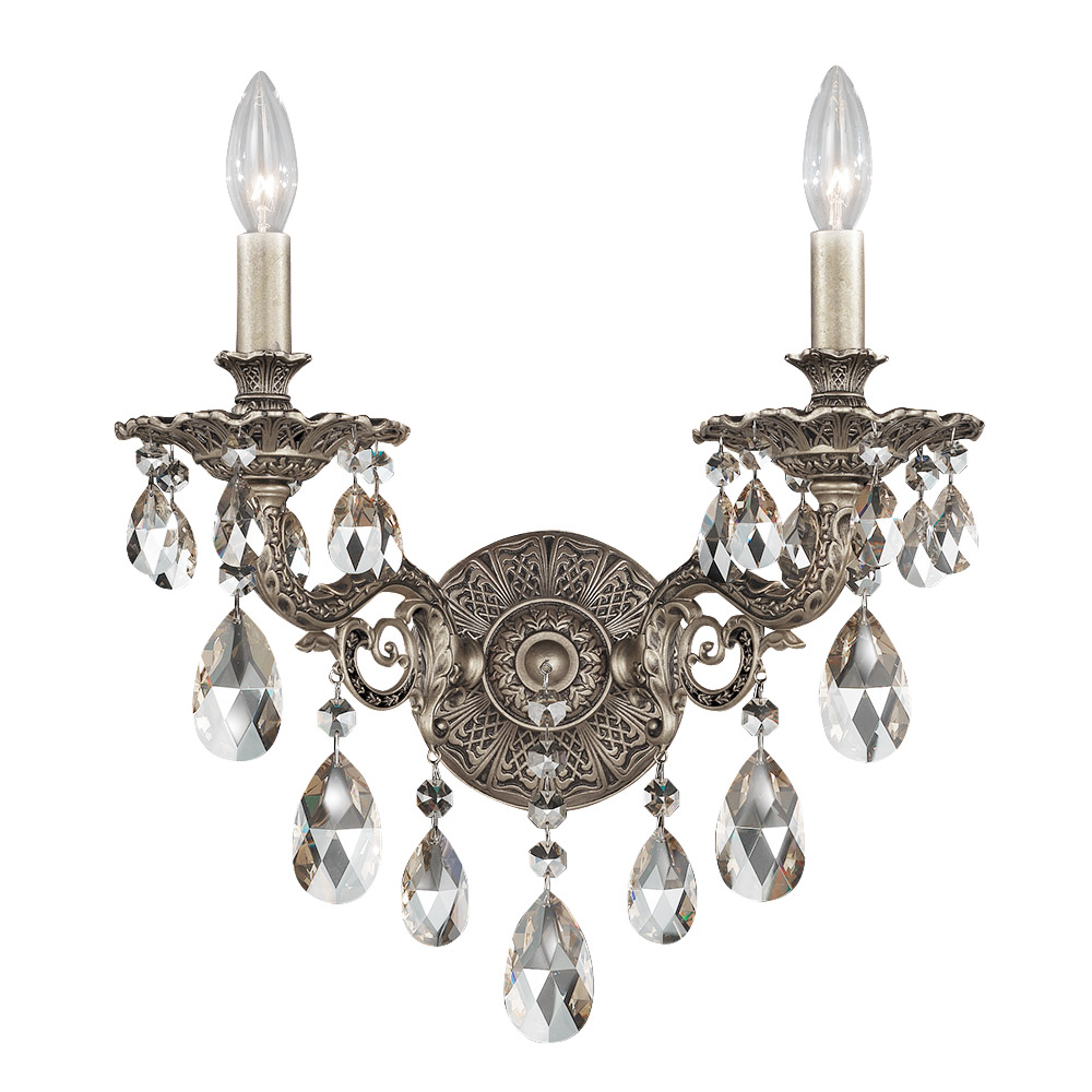 Бра 2-х рожковое из коллекции Milano на металлической арматуре цвета позолоченное олово. Декор: прозрачные подвески и кулоны из хрусталя Swarovski SPECTRA. Возможны другие варианты хрусталя по типу и цвету, а также различные покрытия металла
