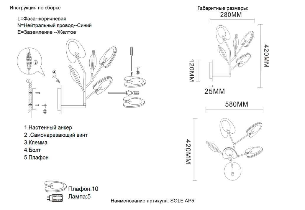 - Количество ламп: 5 шт