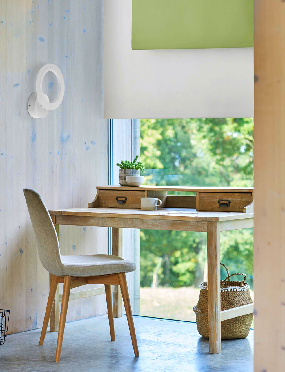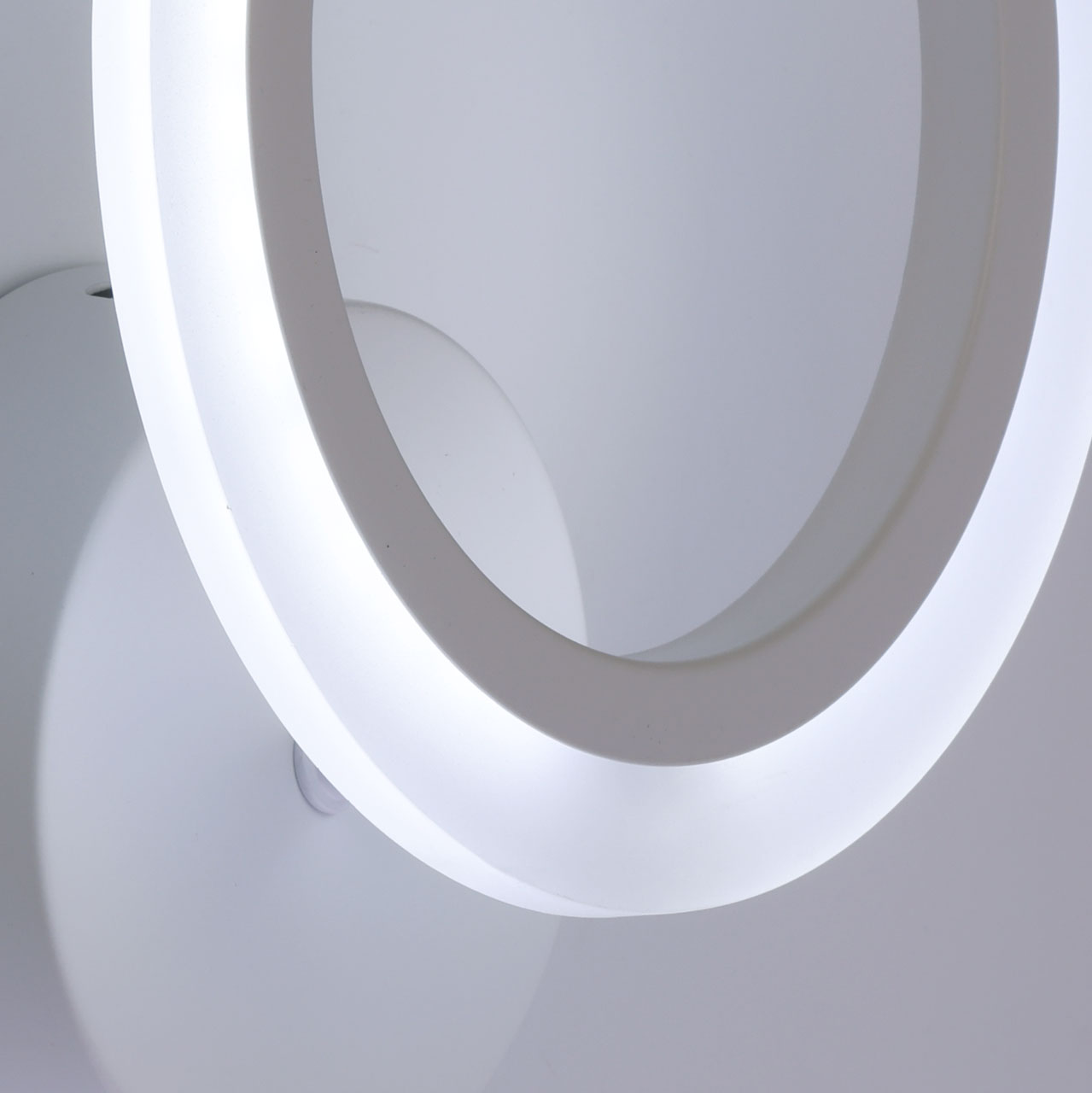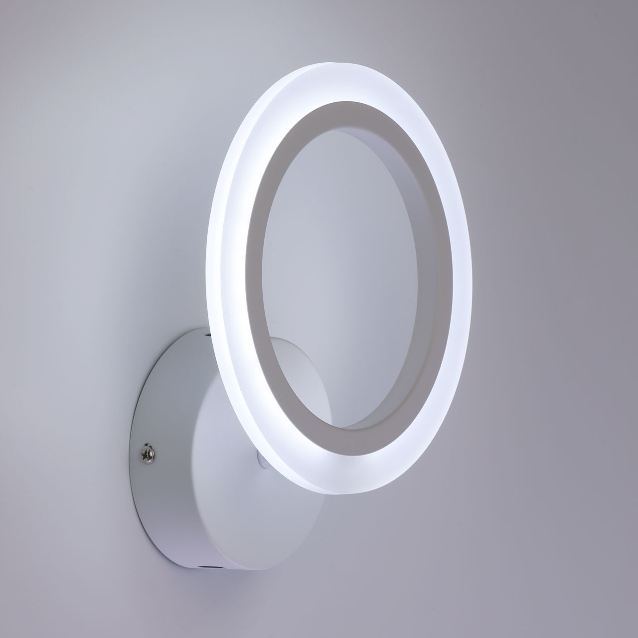 Металлическое основание настенного бра окрашено в белый цвет. Корпус плафона выполнен из сплава алюминия с цинком и окрашен в цвет основания. Светодиодные источники света закрыты белым матовым акрилом.