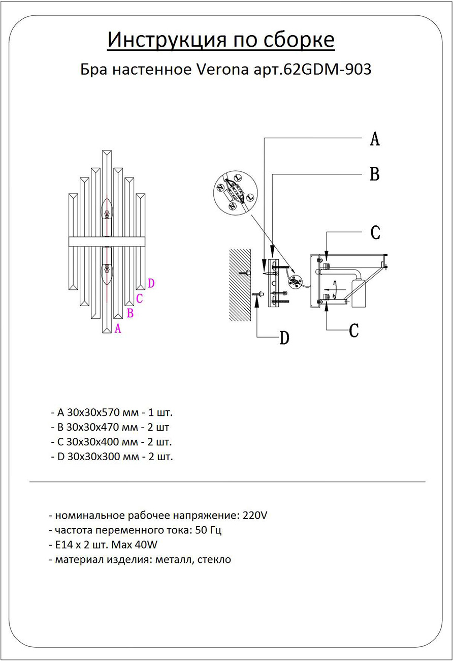 Купить "Бра VERONA Garda Decor 62GDM-903"