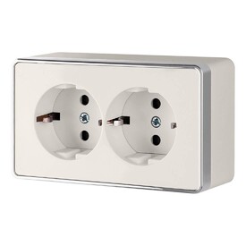 Розетка двойная влагозащищенная с заземлением с защитной крышкой и шторками Werkel серебряный W1172206 4690389178085