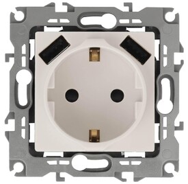 Розетка Эра Elegance 2P E со шторками 16A 250V 2xUSB 14-4109-02 Б0047868