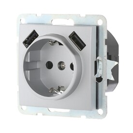 Розетка LK Studio с з/к + 2хUSB разъема, 2А (серебристый металлик) LK60 868003-1