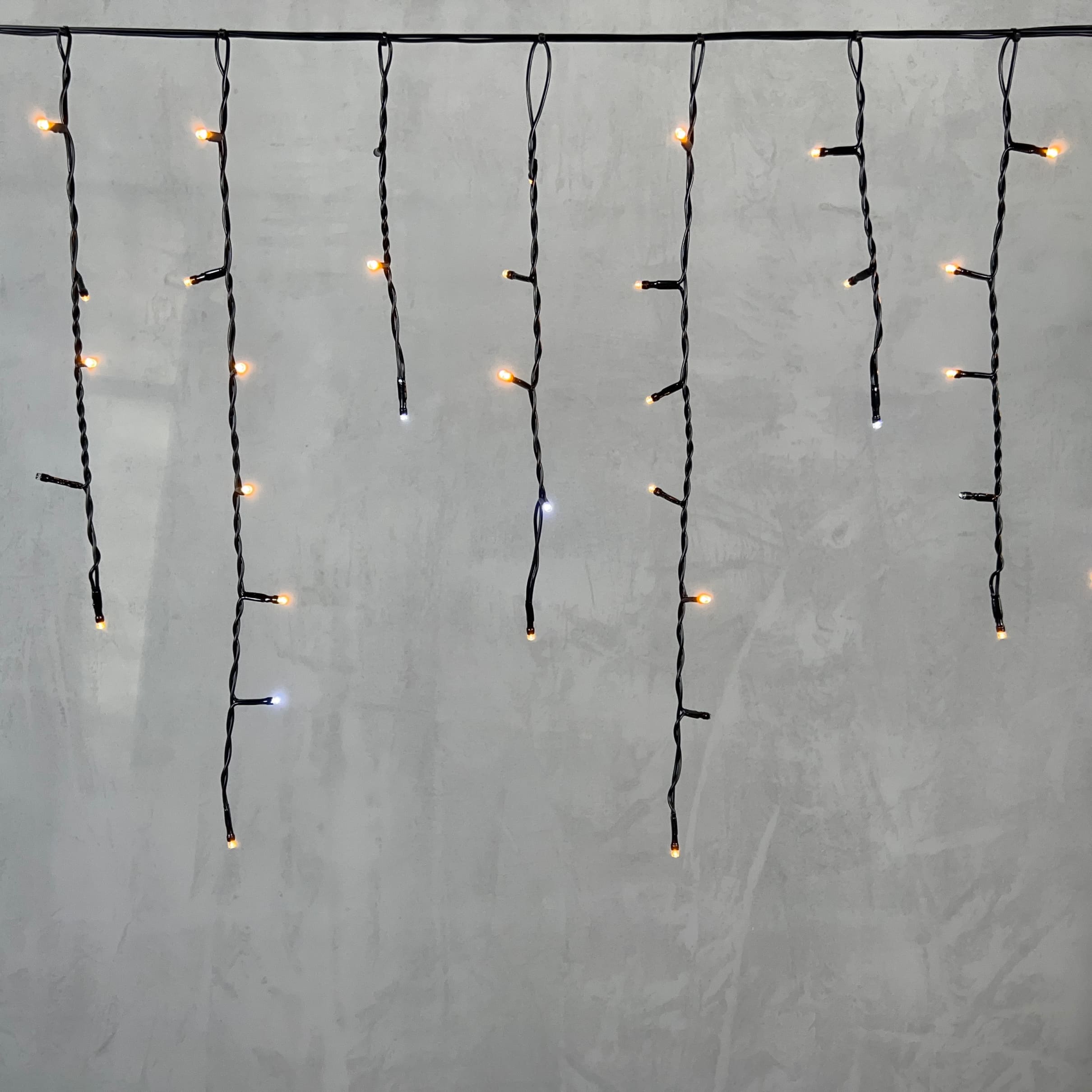 Гирлянда Бахрома 3, 1 x 0, 5 м Экстра Тепло-Белая с Мерцанием Белого Диода 220В, 150 LED, Провод Черный ПВХ, IP54 LTC PIL150BLW-11-2EWW в Зеленодольске