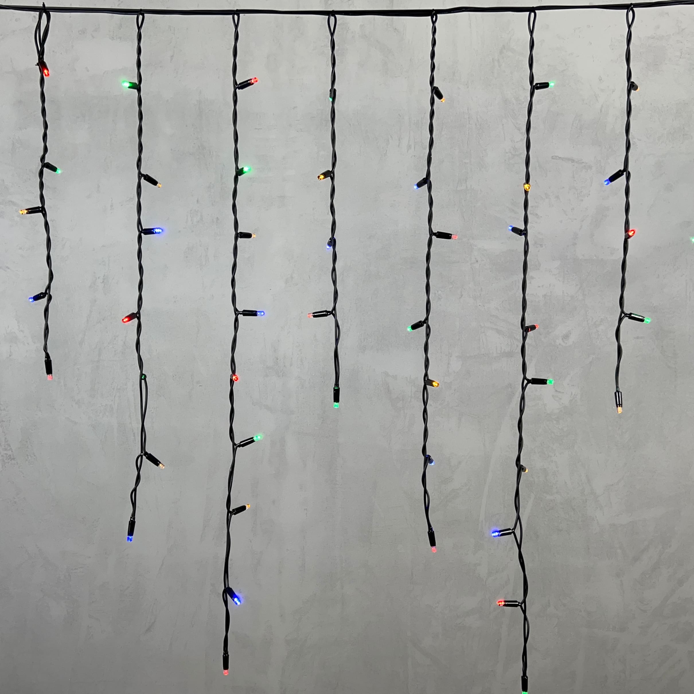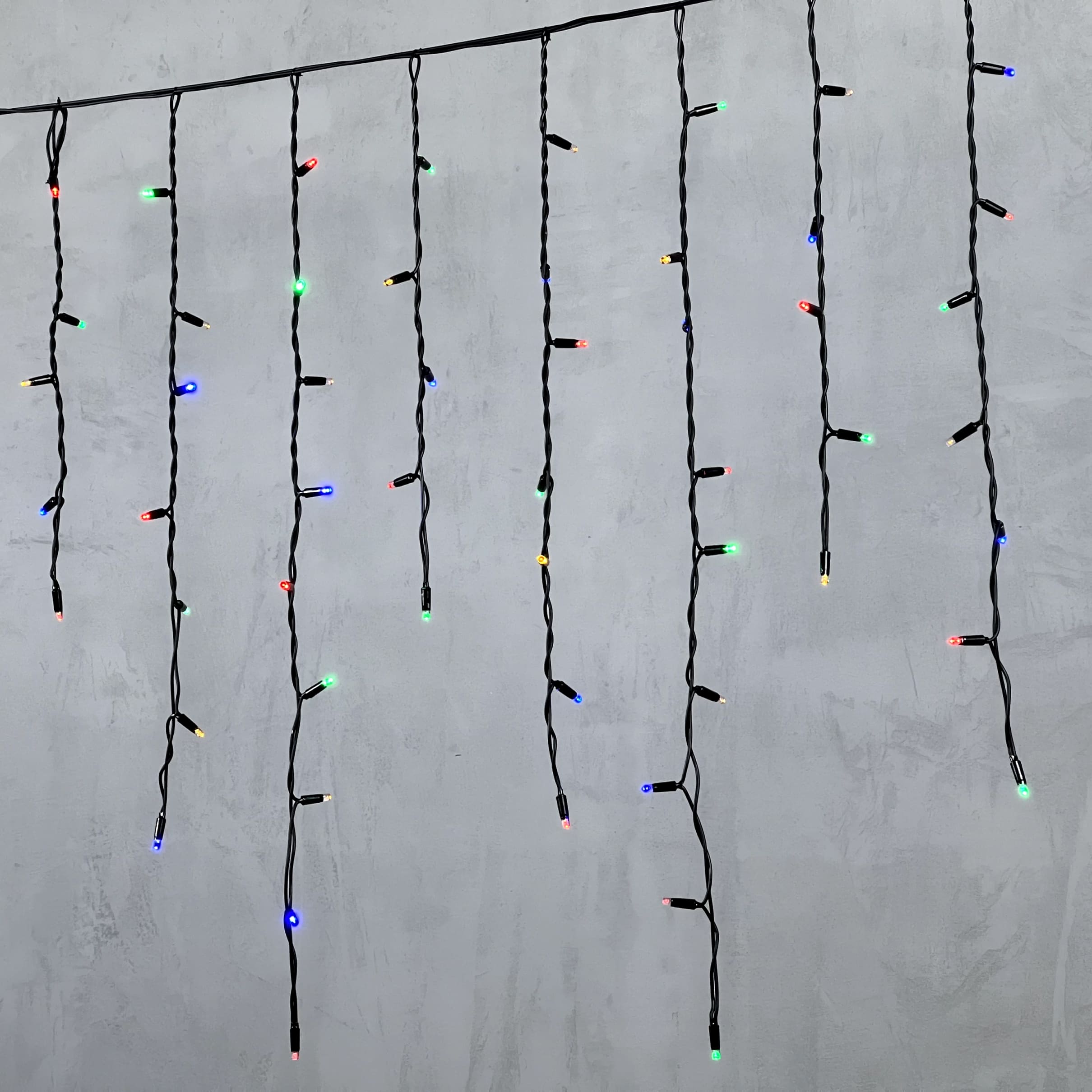 Гирлянда Бахрома 3, 2 x 0, 9 м Разноцветная 220В, 168 LED, Провод Черный Каучук, IP65 LTC LL168-1-2M в Зеленодольске