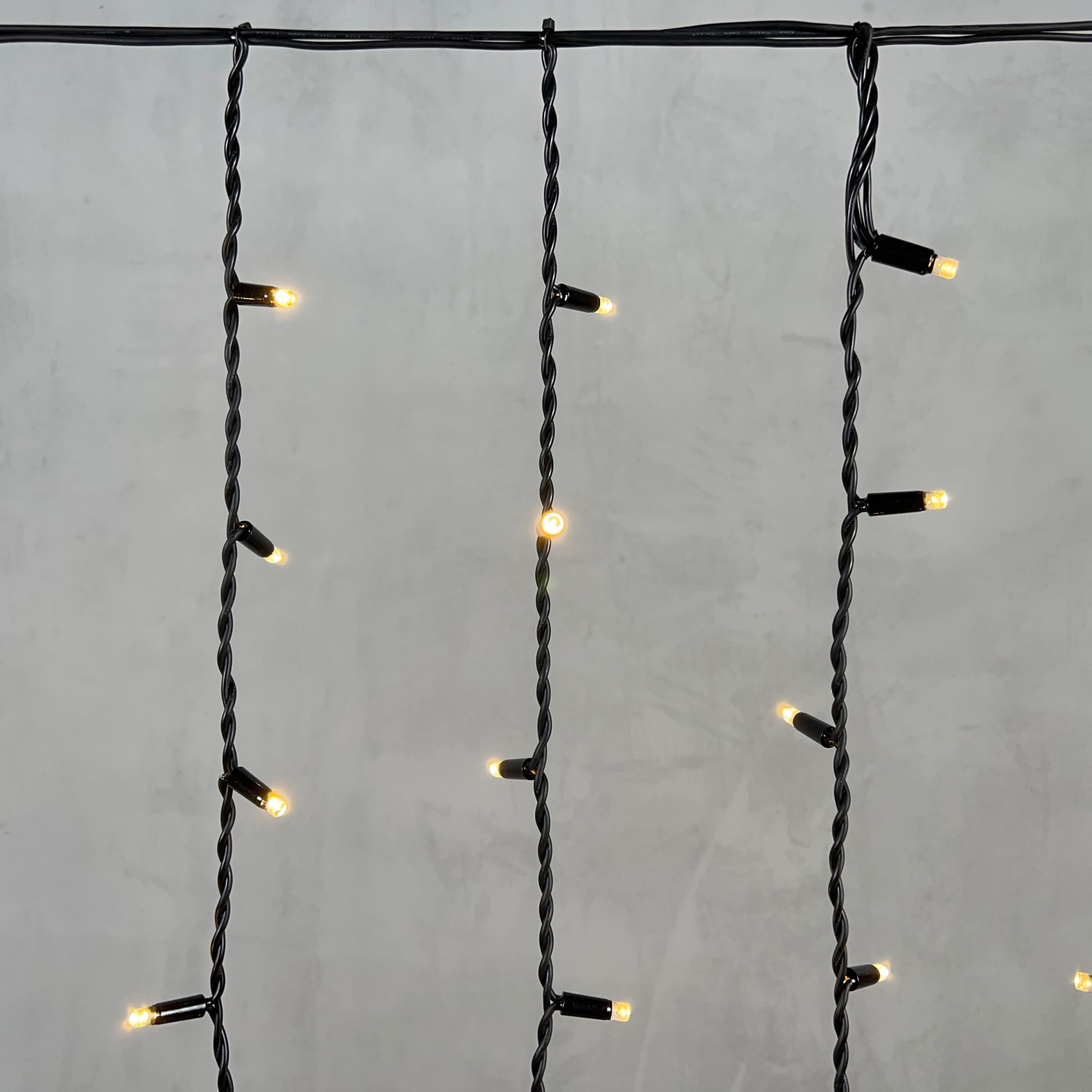 Купить "Гирлянда Бахрома 3,2 x 0,9 м Тепло-Белая с Мерцанием Белого Диода 220В, 168 LED, Провод Черный Каучук 2,3мм, IP65 LTC ECO168BLW-1-2WW"