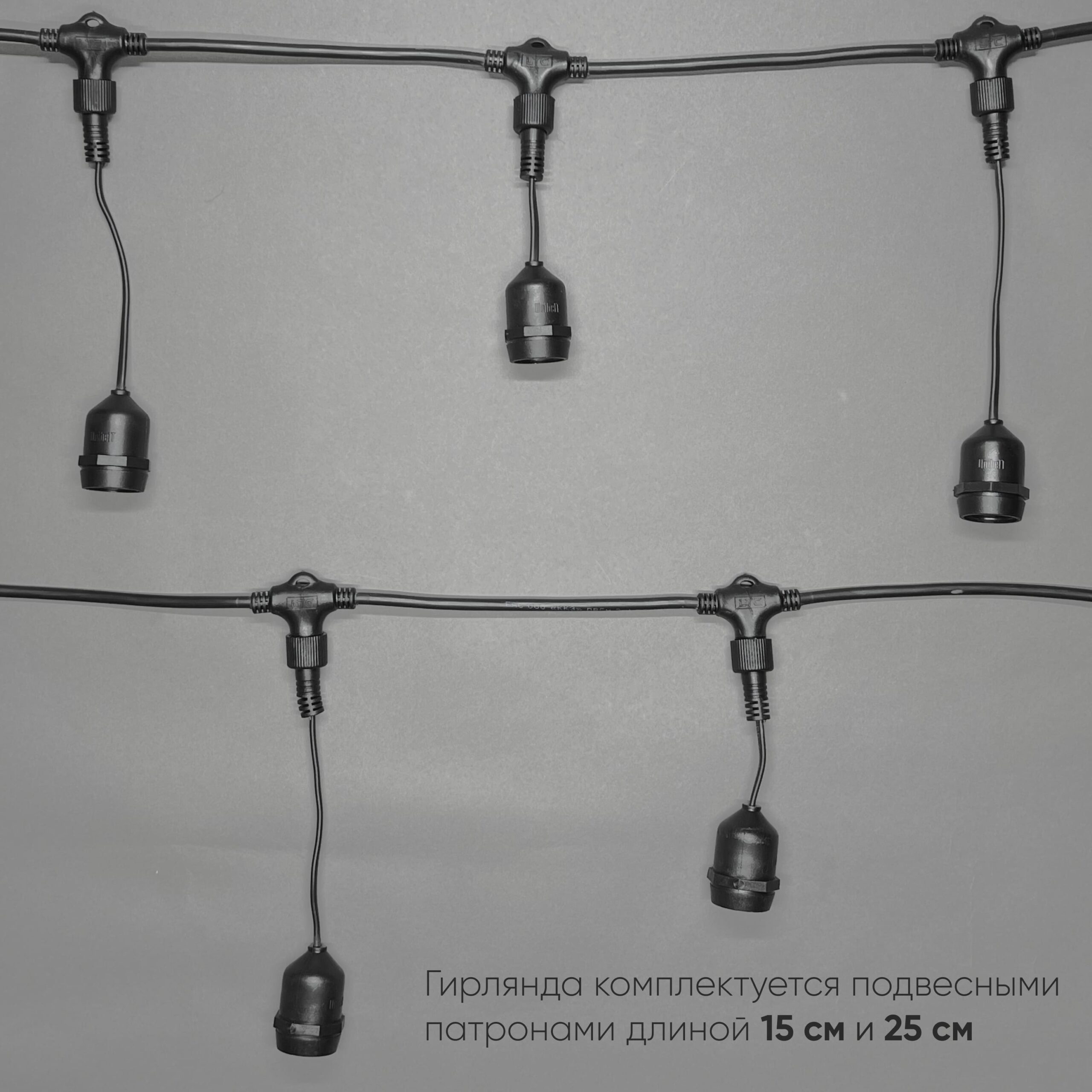 Белт-Лайт UNIBELT 10м, Провод Черный Каучук, Шаг 100 см, 10 Подвесных Патронов, IP65 LTC UBL10m/10L-1 в Зеленодольске