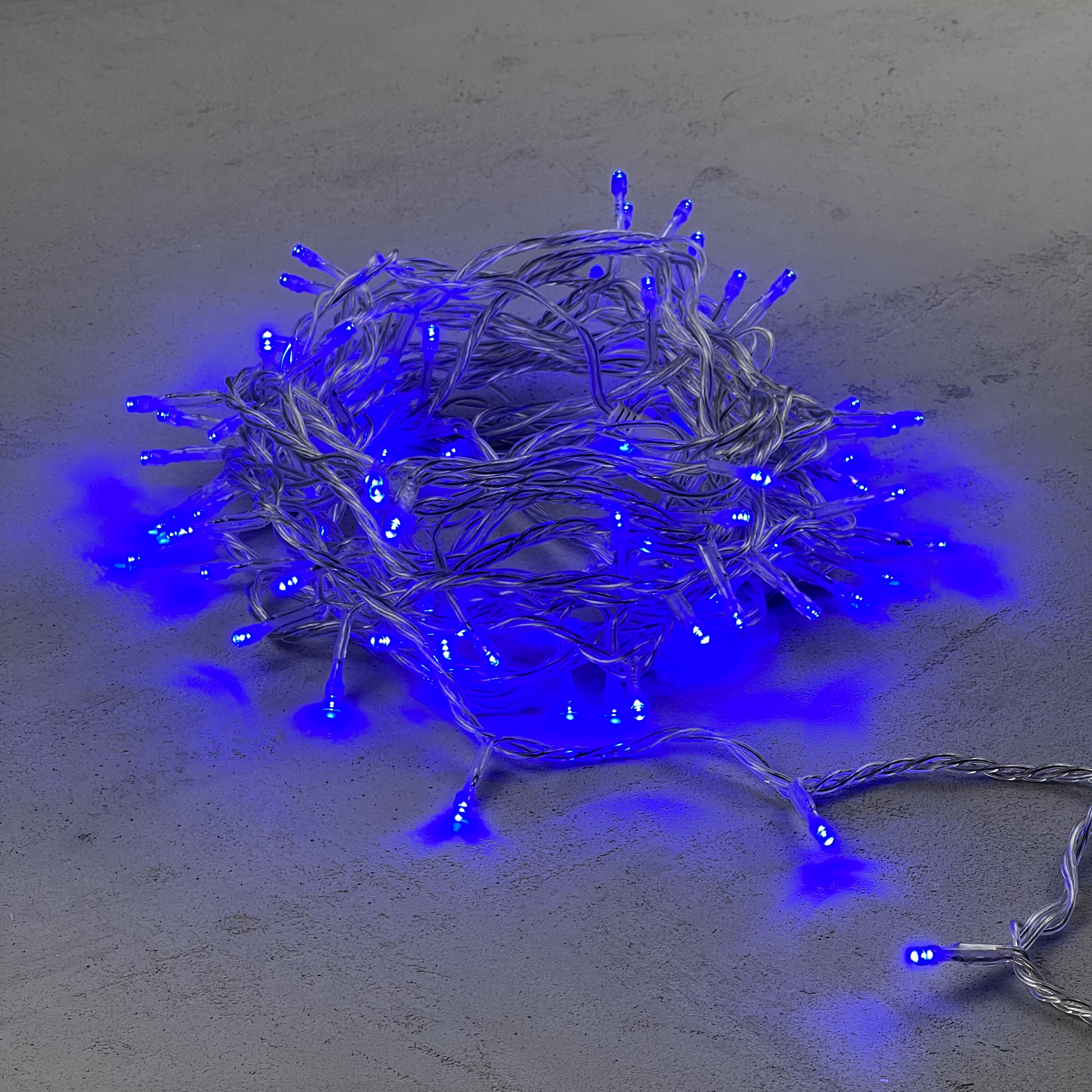 Купить "Гирлянда Нить 10м Синяя 220В, 100 LED, Провод Прозрачный ПВХ, IP54 LTC PST100-10-2B"