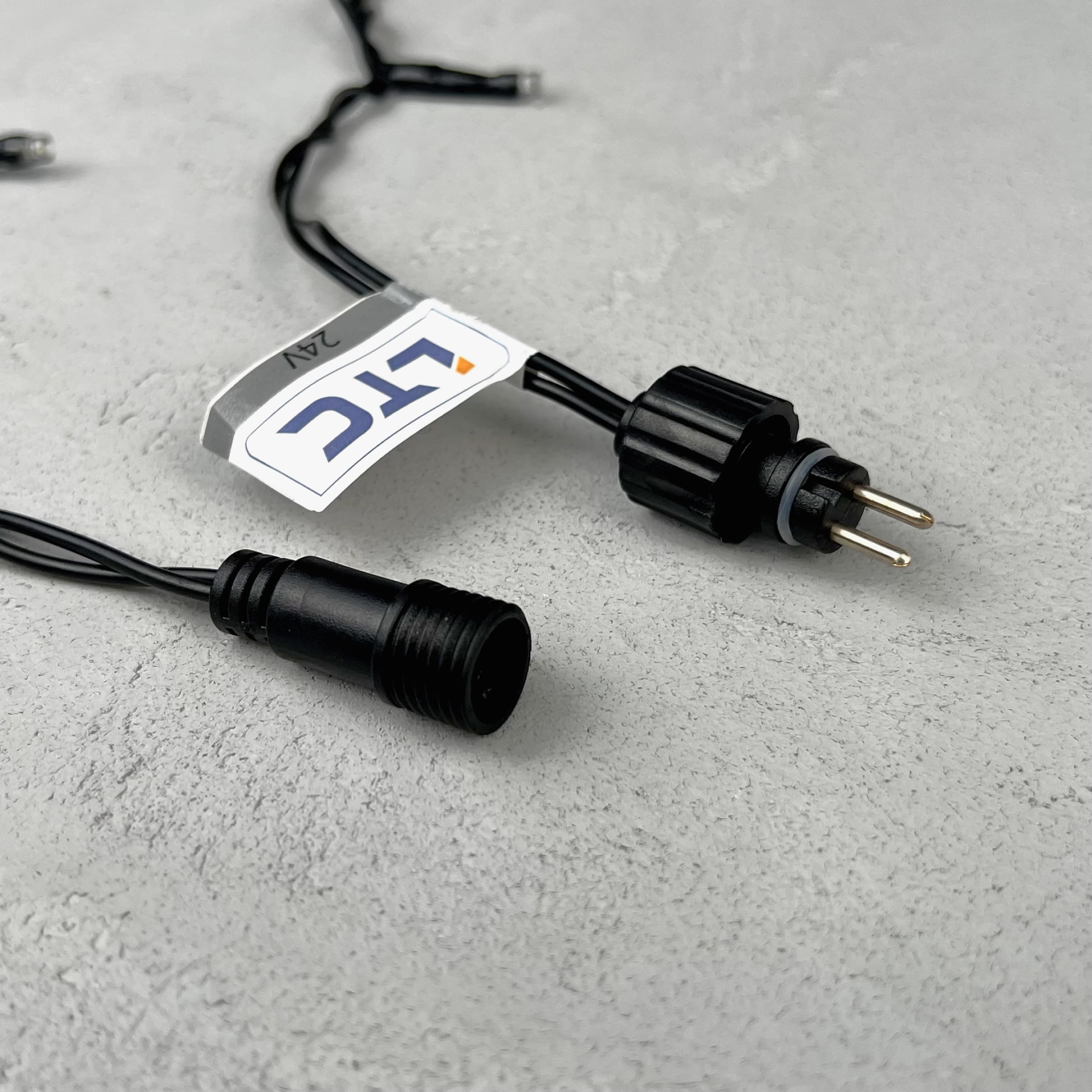 Для подключения данной гирлянды требуется трансформатор. Блок Питания Электронный 60W для Нитей 24В, до 1000 LED, Провод Черный Каучук, IP65 – Необходим для подключения гирлянды к питанию (к розетке 220В). Используя данный трансформатор, вы сможете соединить последовательно в цепь до 1000 светодиодов (например, если в одной гирлянде 100 светодиодов, то вы сможете соединить последовательно до 10 гирлянд).