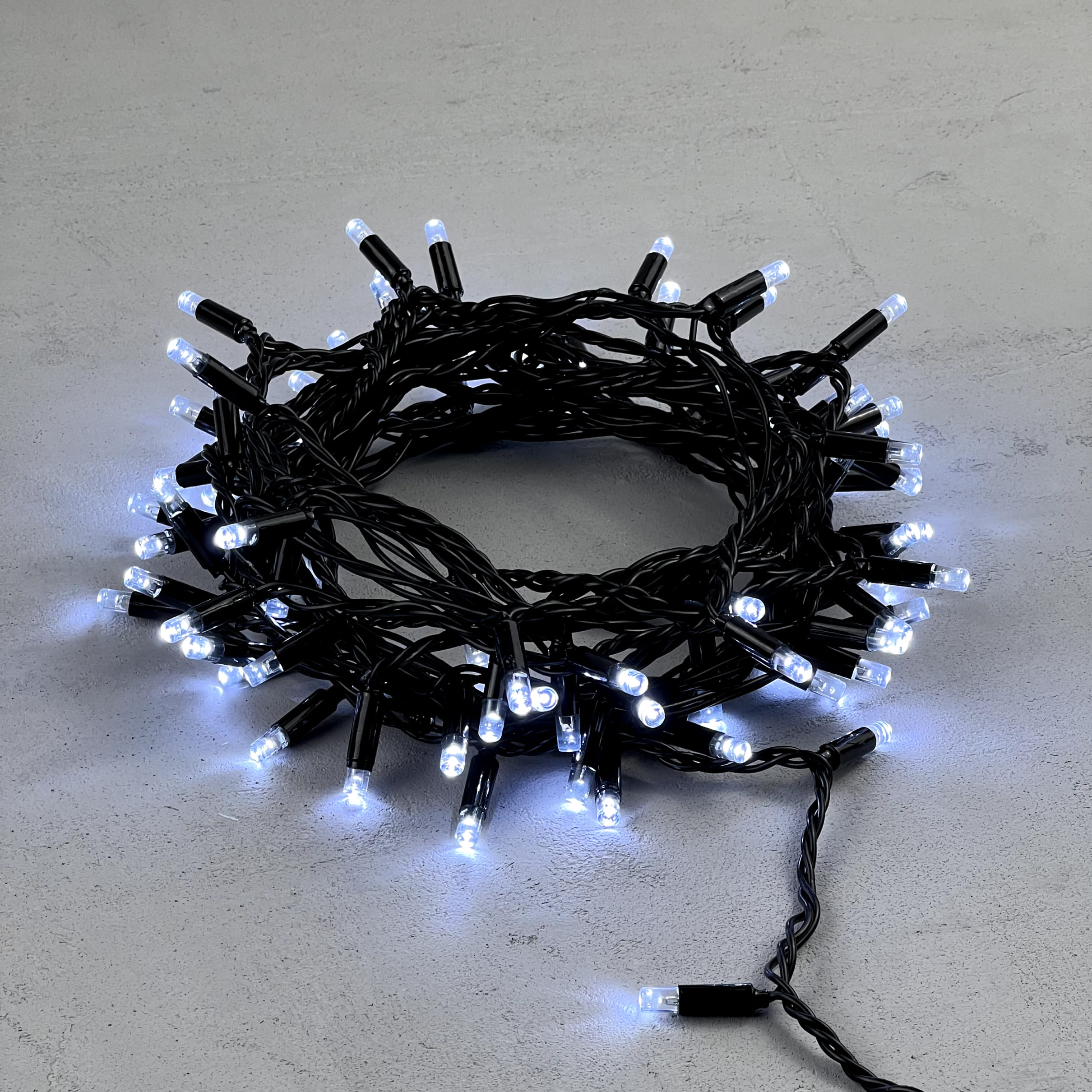 Гирлянда Нить с Колпачком 10м Белая 24В, 100 LED, Провод Черный ПВХ, IP65 LTC PST100CAP-11-1W в Зеленодольске