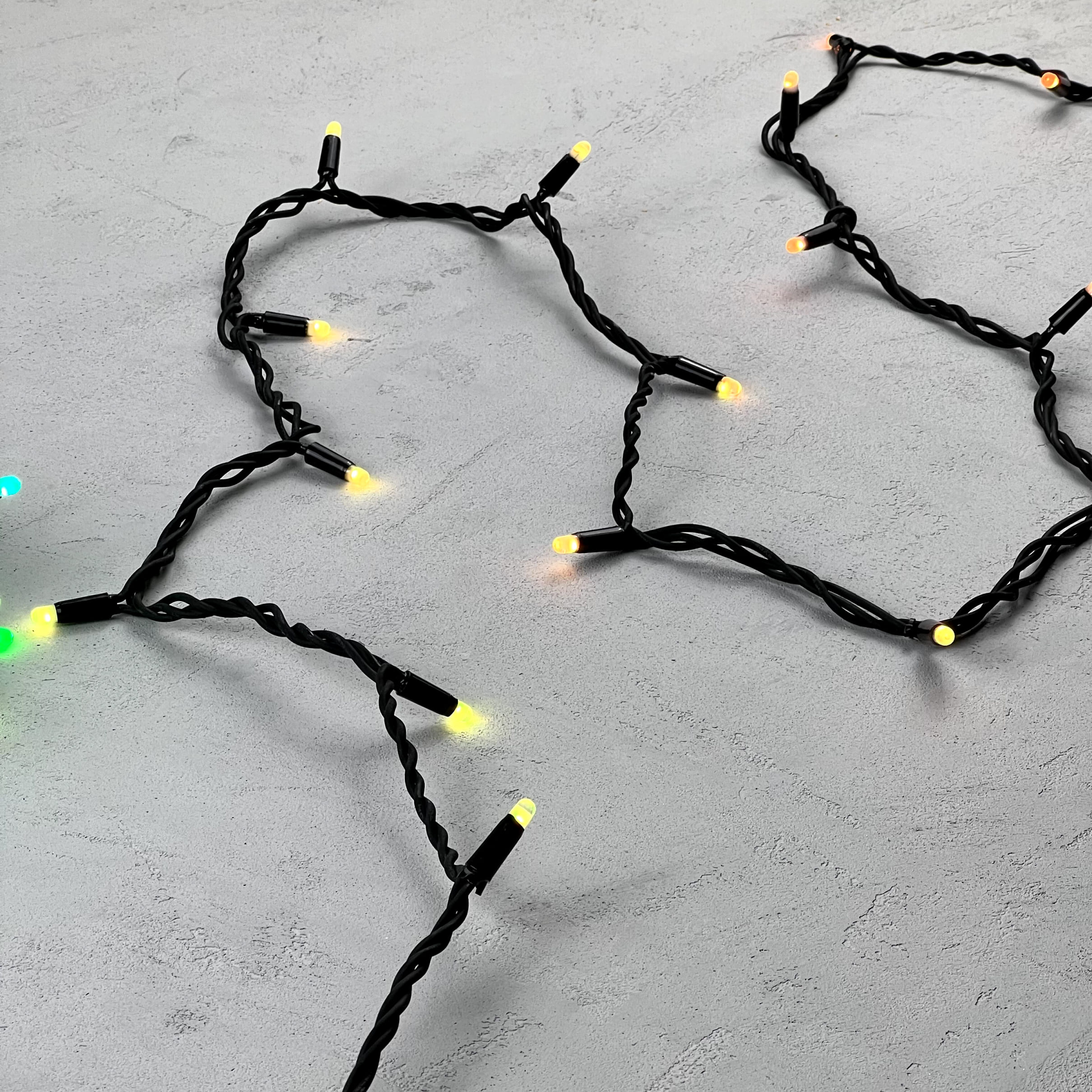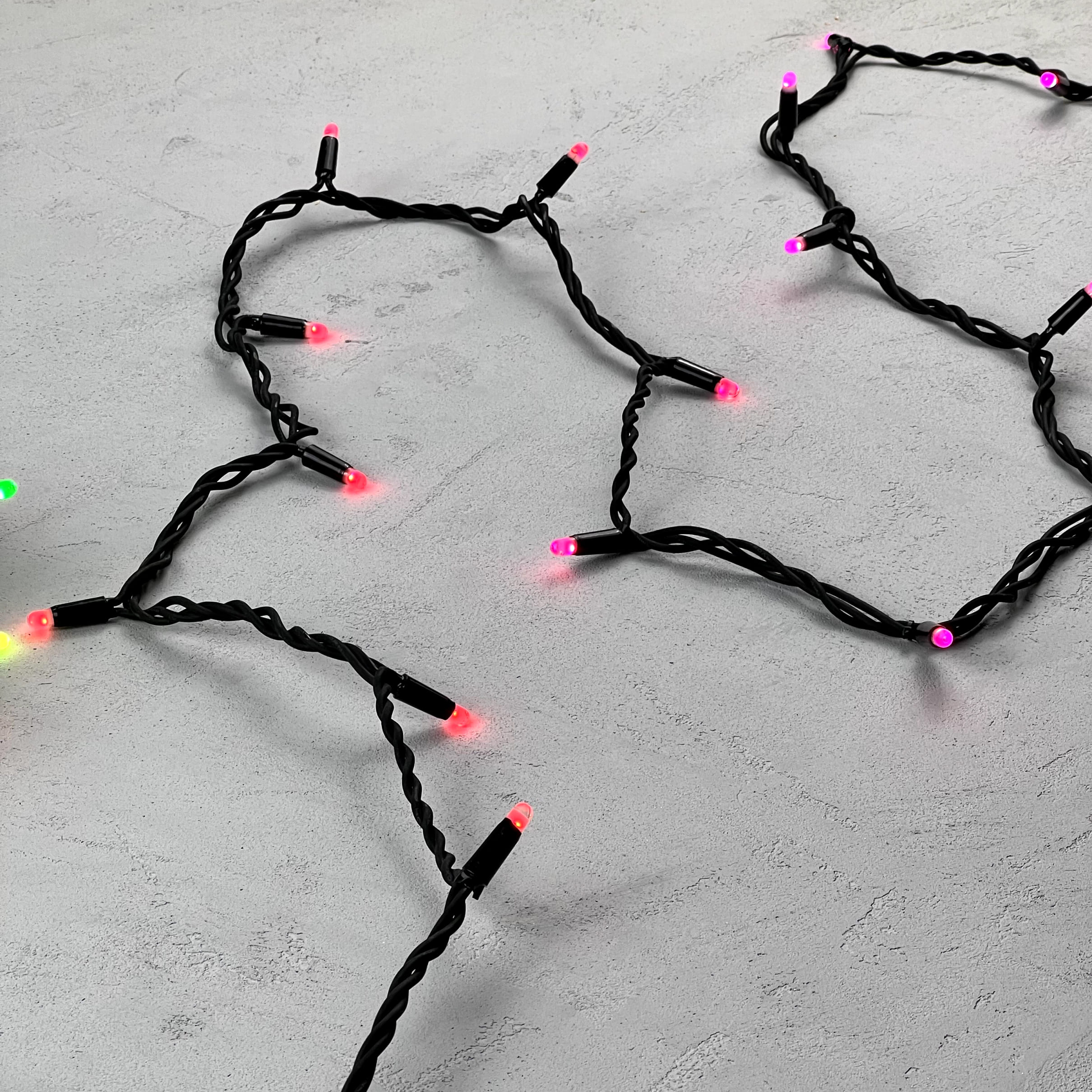 Купить "Гирлянда Нить с Колпачком 15м Разноцветная 220В, 100 LED, Провод Черный Каучук, IP65 LTC AUG100CAP-21-1EPRGB"