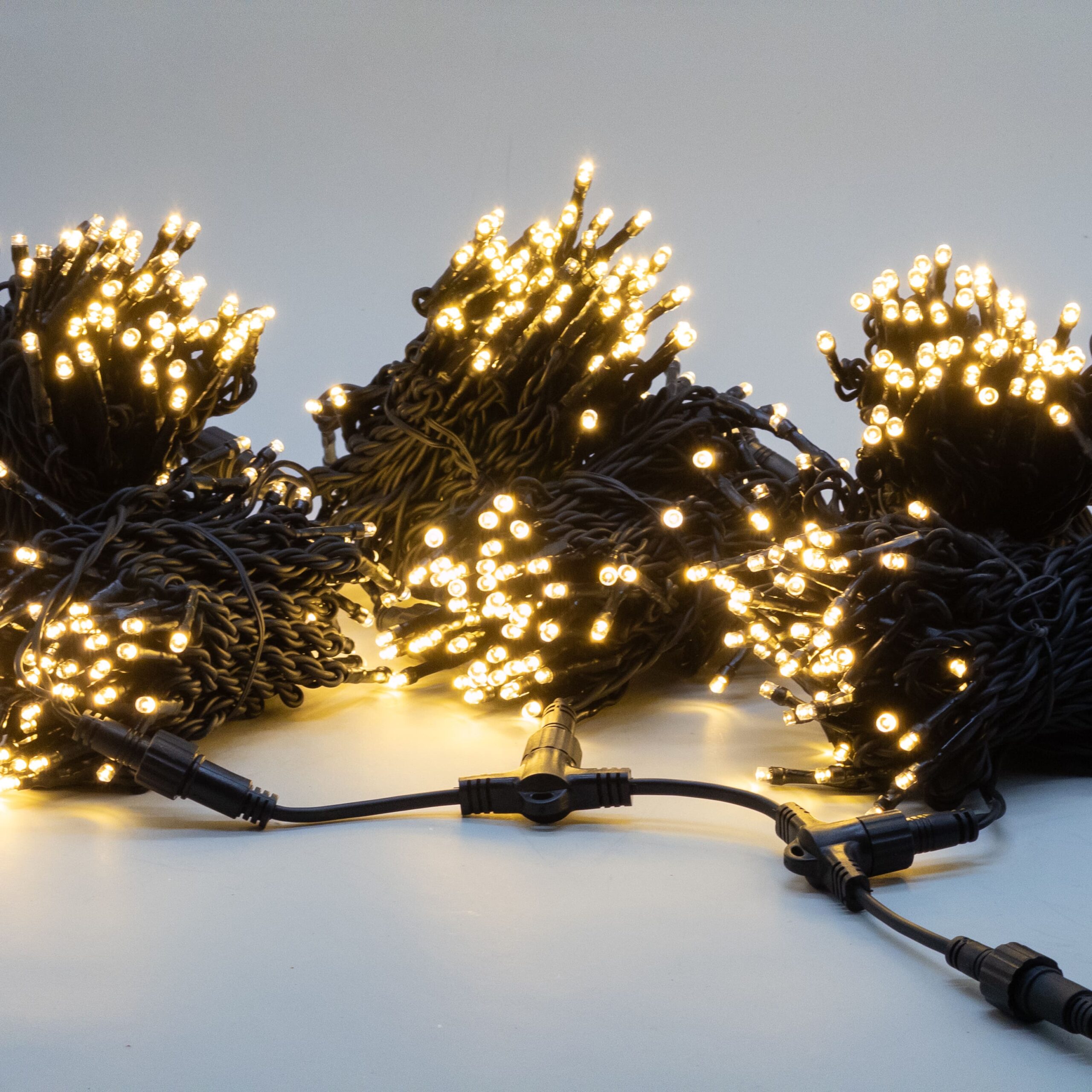 Купить "Комплект 3 Тепло-Белых Нити по 20м, 600 LED, Провод Черный Каучук 2,3мм, IP54 LTC ECO600-11-1WW"