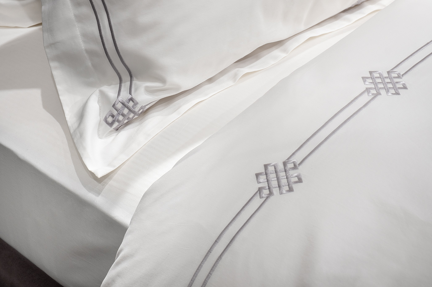 Классический комплект «Арктик» изготовлен из 100% хлопка-сатина высокой плотности 400ТС. Белое белье украшает изящная серая вышивка, которая обрамляет пододеяльник и наволочки по периметру. Этот сложный узор – переплетённые линии с элементами Арт-деко. Модель привлекает внимание красивым контрастом между белой тканью и орнаментом оттенка старинного серебра. Вышивка на постельном белье - дорогой элемент, который придает белью более выраженный вид, создавая объем и, подчеркивая, ценность постельного белья. Оригинальная геометрия орнамента подойдет и для современного интерьера, и для эффектного стиля ар-деко, и для классического дизайна. В данный комплект входят: Пододеяльник 200*220, наволочка 50*70-2 шт и простыня 270*280. Уход: Машинная стирка при максимальной температуре 40С, мягкий режим. Стирать моющими средствами для цветных тканей. Не отбеливать. Барабанная сушка возможна, обычная температура. Гладить с изнаночной стороны при максимальной температуре утюга. Сухая химчистка запрещена.