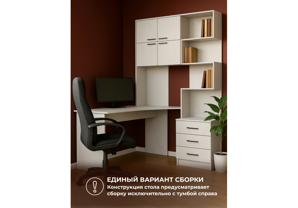 Компьютерный стол левый Woodville Эльброни белый 664904 в Зеленодольске