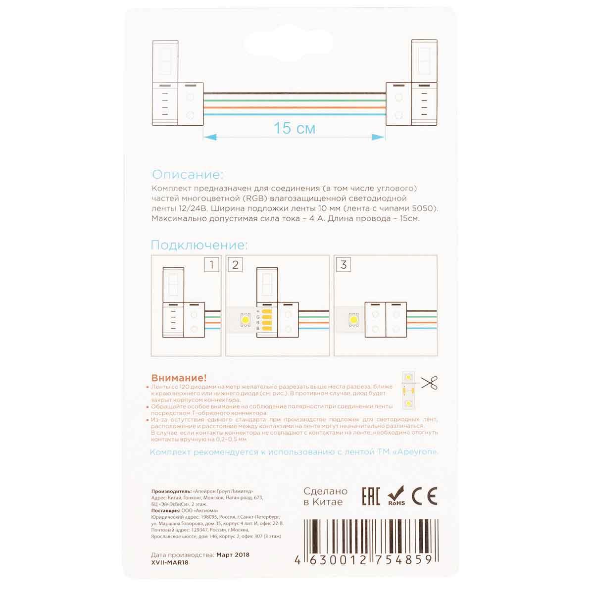 Купить "Коннектор для RGB светодиодной ленты 5050 Apeyron 12/24V (2 шт.) 09-15"