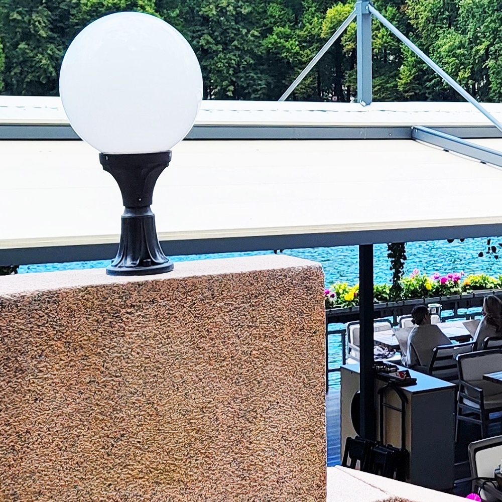 Ландшафтный фонарь FUMAGALLI большого размера в пушкинском стиле серии GLOBE 400, модель LOT/GLOBE 400. Светильник большого размера на наземном креплении LOT применяется для освещения входных групп, пандусов, стилобатов, колонн, парапетов, и других архитектурных объектов где требуется уличное освещение. Устанавливается на горизонтальную поверхность, как правило на каком либо возвышении, для гармоничного интегрирования в интерьер или экстерьер проекта. Изготовлены в Италии, по уникальным технологиям "FUMATECH" из современного композитного полимера RESIN. Этот материал в 5 раз прочнее силумина, не ржавеет, не окисляется, не выгорает на солнце, его не нужно красить. Все светильники пыле-влаго защищены по стандарту IP65 (Пыленепроницаемые, защита от водяных струй с любого направления). Рассеиватель выполнен из антивандального, не мутнеющего и не горючего PMMA (ПолиМетилМетаАкрилат). Срок службы светильника - не менее 20 лет. Температура использования от -60 до +90. В серии GLOBE 400 есть ландшафтные фонари в настенном (OFIR/GLOBE 400, ADAM/GLOBE 400) и наземном исполнении (TABOR/GLOBE 400, HOREB/GLOBE 400) со столбами разной высоты, с разным количеством и конфигурацией голов. Консоли настенных фонарей и кронштейны светильников на столбах освещения устанавливаются в положение "вверх" и "вниз". Столбы имеют в основе мощную стальную трубу с двойной оцинковкой и монтажный люк. Закладные элементы- в комплекте. При заказе требуется выбрать цвет корпуса и цвет плафона.