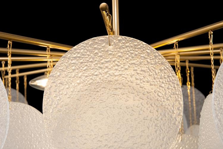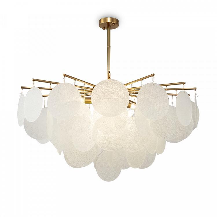 Холодная красота серии Porto – заслуга нетривиального декора, выполненного в виде тонких округлых пластин с эффектом замороженного стекла цвета рисовых полей. Теплый свет, проходя сквозь фактурную поверхность, создает атмосферу с настроением щедрого ар-деко. Металлическая арматура в двух оттенках – латунь и никель – имеет элегантные, утонченные формы. Сочетание тонко очерченных рожков и воздушного стеклянного декора создает эффект парения. Светильник словно замирает в воздухе, образуя своеобразную визуальную иллюзию. Яркая модель подойдет для комнат, оформленных в стиле ар-деко, модерн, неоклассика. Серия включает люстры разных размеров на 6 и 8 ламп. Все светильники снабжены цоколем Е14.