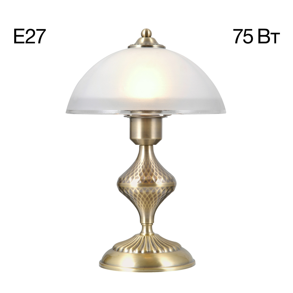 В изделии используются 1 лампа с цоколем Е27 максимальной мощностью для ламп накаливания 75Вт. Высота светильника 32см, диаметр 22см, диаметр основания 13см, длина сетевого провода 1,8м.