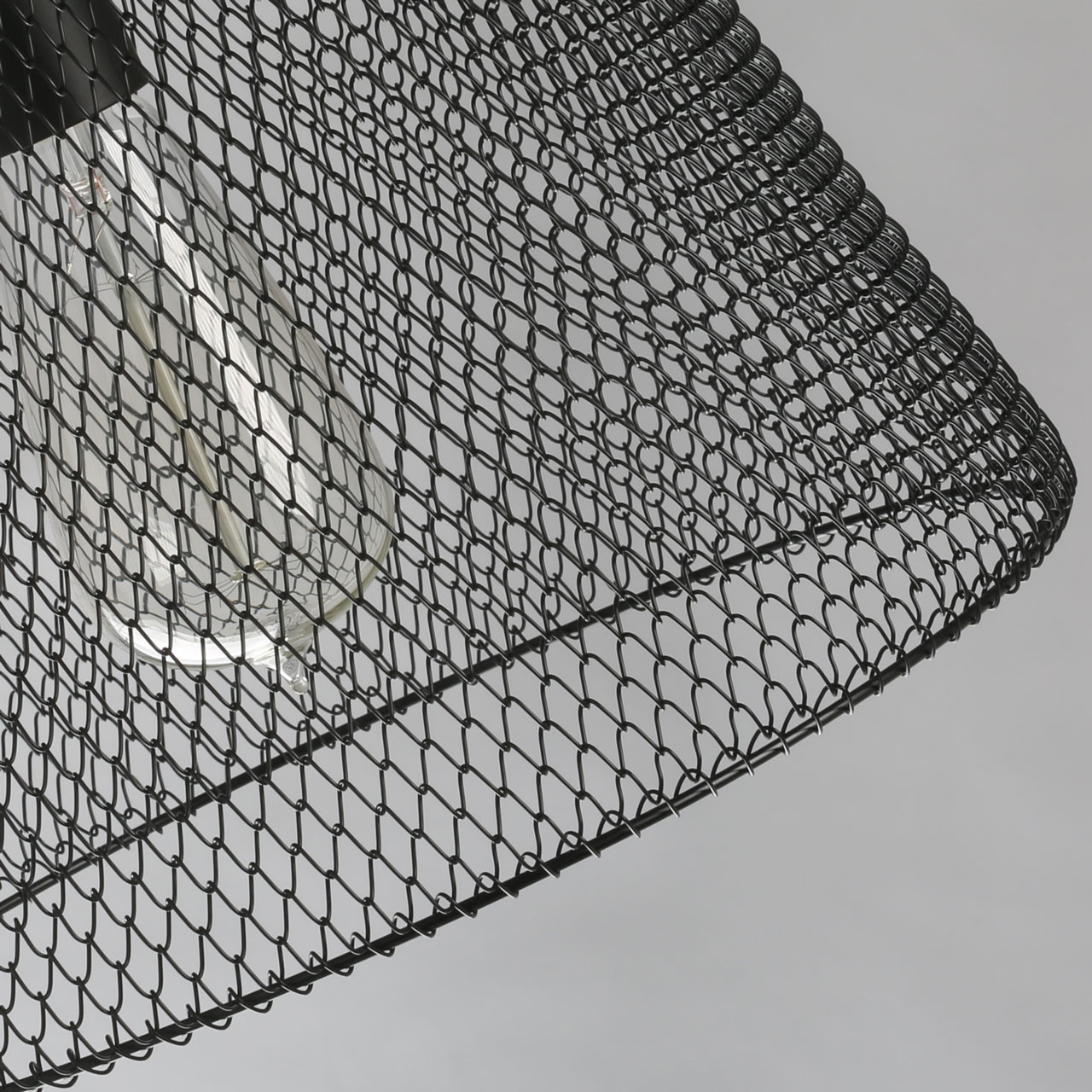 Металлическое основание и плафон в виде сетки окрашены по технологии электрофореза в черный матовый цвет.