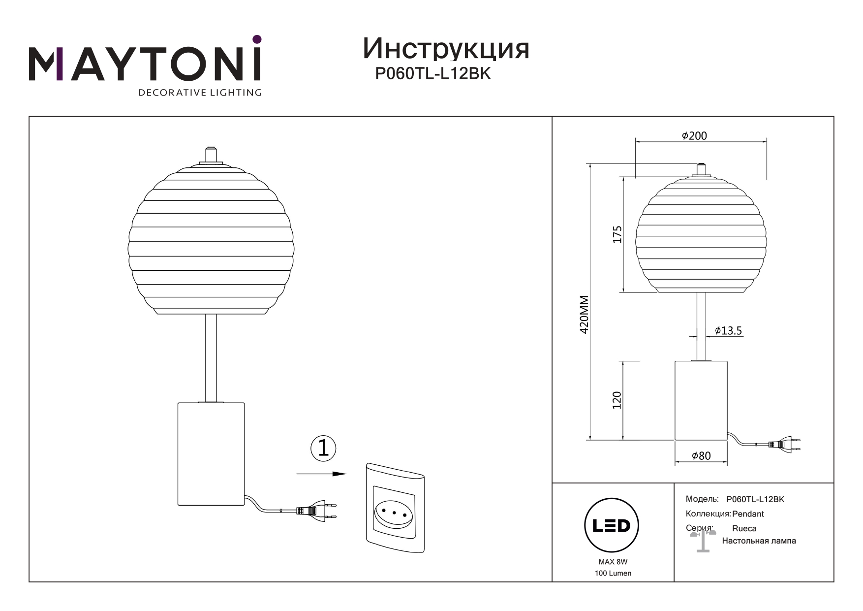 Данную модель P060TL-L12BK с быстрой доставкой спешите купить по цене 16 990 ₽ в магазине 220svet.ru