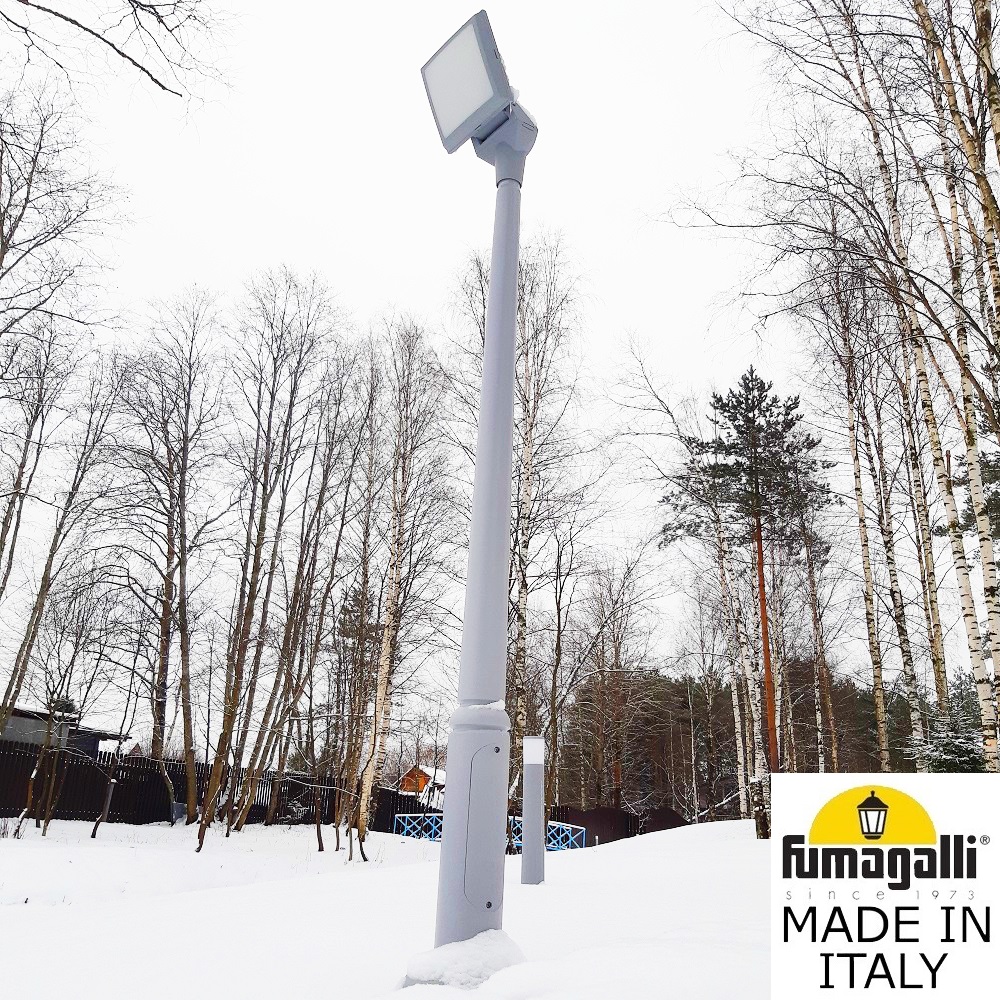 Парковый фонарь FUMAGALLI большого размера серии GIORGIO, модель EKTOR 2500/GIORGIO. Парковый фонарь - прожектор среднего размера в современном стиле на столбе EKTOR. В качестве источников света используются 2 лампы с стандартным цоколем Е-27, возможна регулировка наклона светильника. Предназначен для освещения парковых дорожек, cкверов, садовых и ландшафтных композиций, и других общественных пространств. Используется в качестве основного уличного освещения на городских улицах и площадях. Благодаря регулируемому углу наклона может применяться для подсветки зданий. Парковые светильники изготовлены в Италии, по уникальным технологиям "FUMATECH" из современного композитного полимера RESIN. Этот материал в 5 раз прочнее силумина, не ржавеет, не окисляется, не выгорает на солнце, его не нужно красить. Все светильники пыле-влаго защищены по стандарту IP65 (Пыленепроницаемые, защита от водяных струй с любого направления). Рассеиватель выполнен из антивандального, не мутнеющего и не горючего PMMA (ПолиМетилМетаАкрилат). Срок службы светильника - не менее 20 лет. Температура использования от -60 до +90. В серии GIORGIO есть ландшафтные фонари в настенном и потолочном исполнении (GUSEPPE, GIOVA/GUSEPPE) а так же двойной прожектор на столб ROSA. Парковые опоры имеют в основе мощную стальную трубу с двойной оцинковкой и монтажный люк. Закладные элементы- в комплекте.