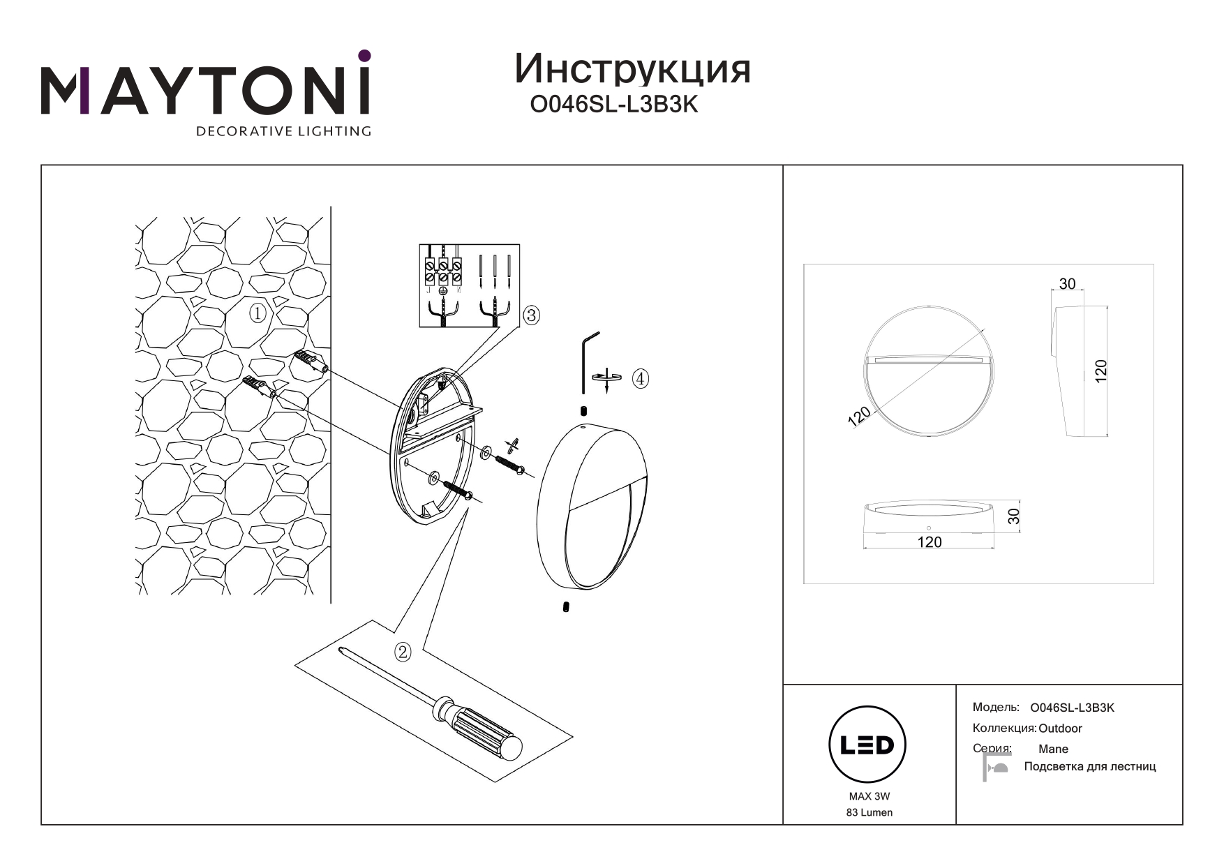 Купить "Подсветка для лестниц Maytoni Mane O046SL-L3B3K"