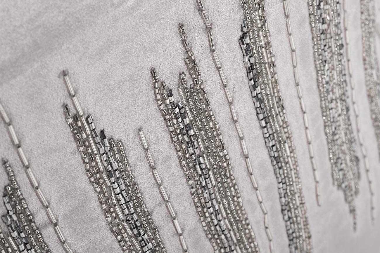 Декоративные подушки в интерьере гостиной обладают настоящей магией – они способны подчеркнуть достоинства интерьера и даже преобразить его без существенных изменений. У модели мягкая бархатистая поверхность, насыщенный серый цвет, упругий наполнитель. А еще на изделии – узор в виде прямых линий, вышитых бисером. Параллельные линии – стильный лаконичный орнамент, уместный в любом современном интерьере. С его помощью можно зрительно увеличить помещение. Задумываясь, где купить декоративные подушки, обратите внимание на наш каталог, в котором богатый выбор премиального текстиля для дома