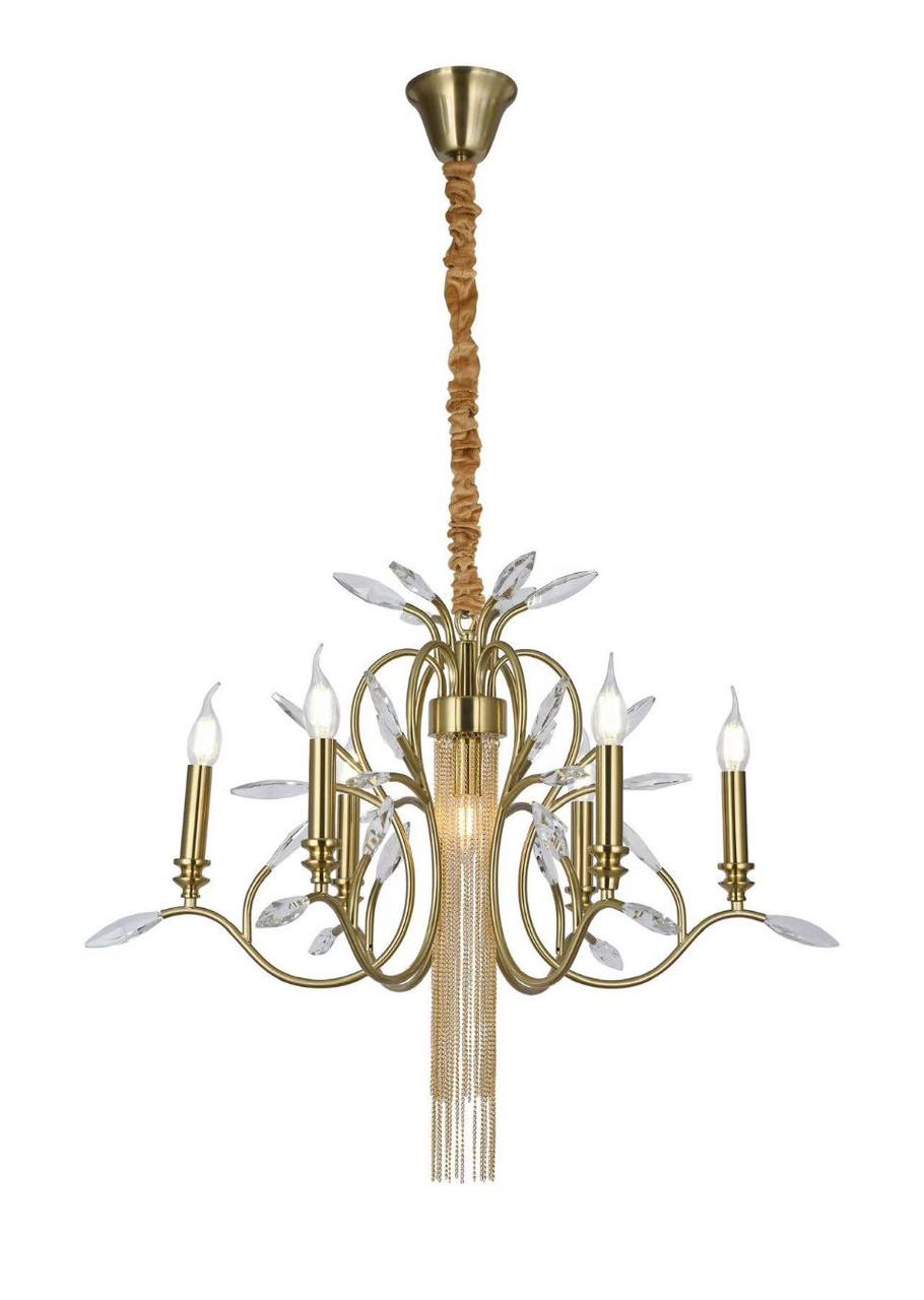 Светодиодные и лампы накаливания с цоколем Е14 обеспечат яркое и комфортное освещение, количество ламп 6. Высота люстры составляет 1130 мм, диаметр 640 мм, а площадь освещения от 10 до 15 кв.м обеспечит равномерное освещение на большой площади.