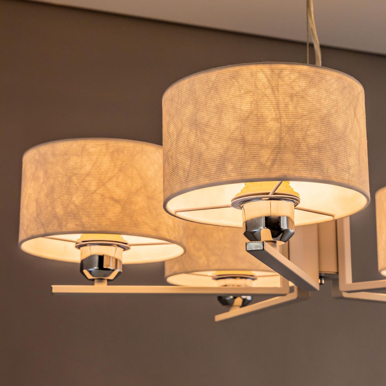 Современная подвесная люстра CL469150 от производителя Citilux принадлежит серии Тильда для стильных интерьеров, оформленных в светлых тонах. Корпус светильника металлический, цвет белый матовый с декоративными хромированными элементами. Абажуры цилиндрической формы, изготовлены из текстурной ткани на подложке из оптического полимера. В изделии используются лампы с цоколем Е27, максимальной мощностью для ламп накаливания 75Вт. Светодиодные лампы можно применять более яркие. Подходит для всех типов потолков, в том числе натяжных. Тип крепления – планка. Диаметр 64см, высота регулируется в диапазоне 30-120см, осветит около 17м² , страна бренда Дания.Купить модель CL469150 спешите в интернет-магазине 220svet.