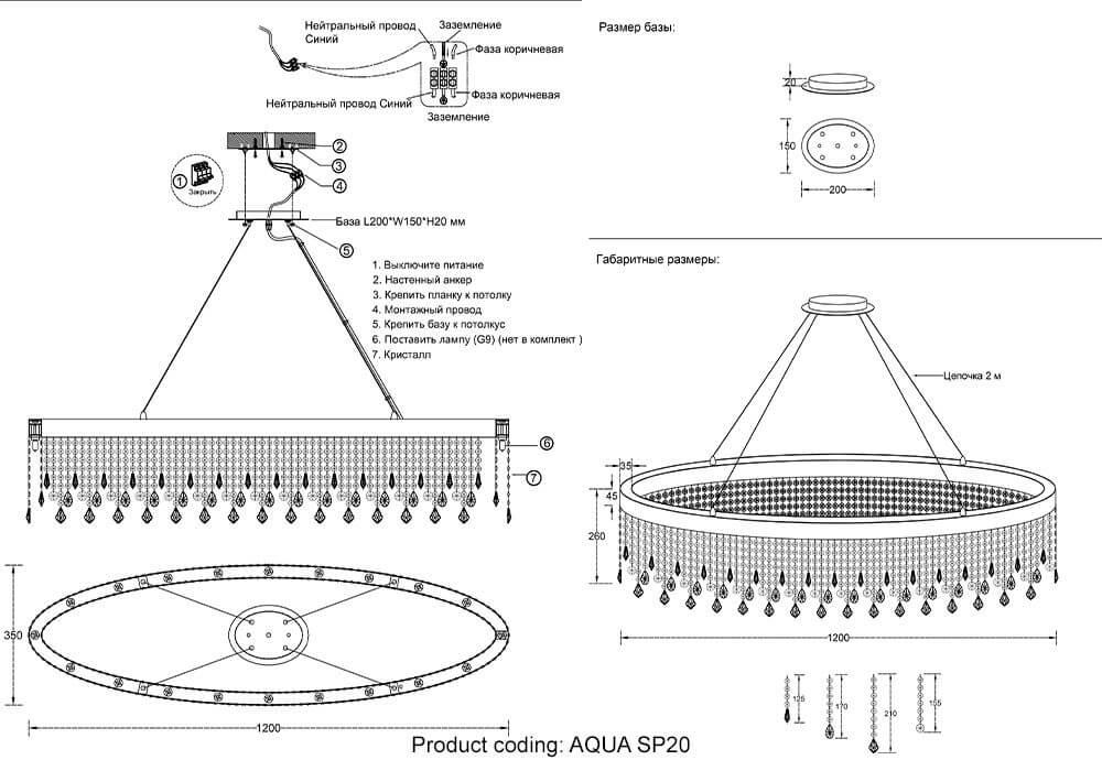 Подвесная люстра Crystal Lux Aqua SP20 в Зеленодольске