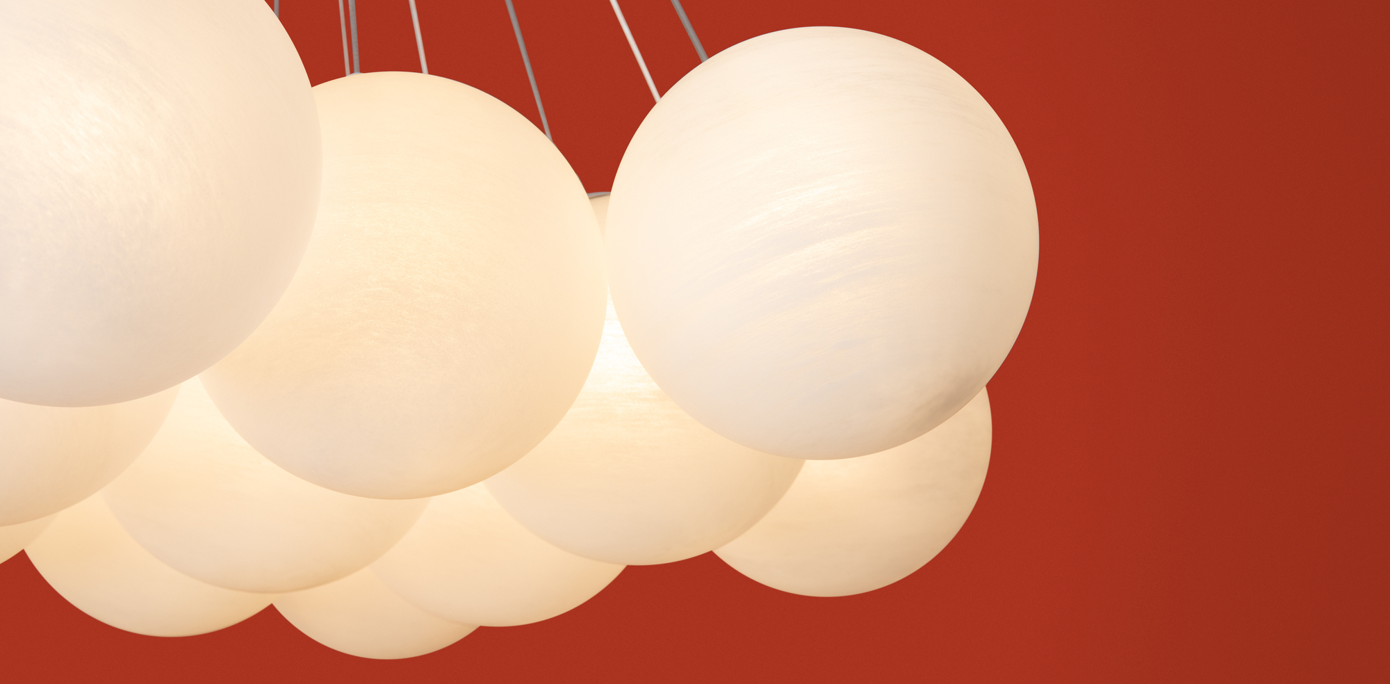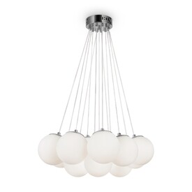 Материал арматуры — металл, цвет — хром/латунь. Подвесные светильники c цоколями E14/E27/G9. Белые стеклянные плафоны с рисунком в виде космических планет крепятся на тонких тросах, которые регулируются по высоте, создавая эффект парящих облаков.