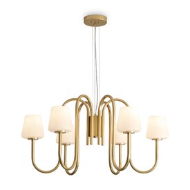Металлическая арматура матового золота и никеля (новинка).Лампа E14 (не в комлекте). Белые глянцевые стеклянные плафоны мягко рассеивают свет. Минималистичная классика для любых интерьеров.