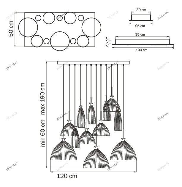 - Количество ламп: 12 шт