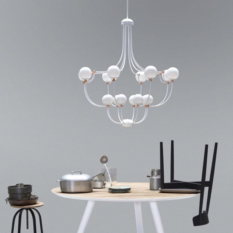 Подвесной светильник из коллекции DOTS на металлической арматуре черного цвета. Плафоны в виде шаров выполнены из стекла белого цвета. Высота светильника регулируется.