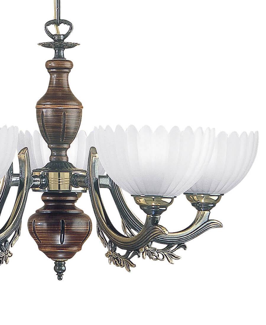 Подвесная люстра Reccagni Angelo L 2805/5 Итальянского производсва – отличный выбор для Вас. Этот светильник Классического стиля хорошо подойдет Для гостиной и придаст помещению мягкий и приятный свет. Плафоны белые из стекла. Арматура бронза из металла. Кол-во ламп - 5шт. Общая мощность 300W