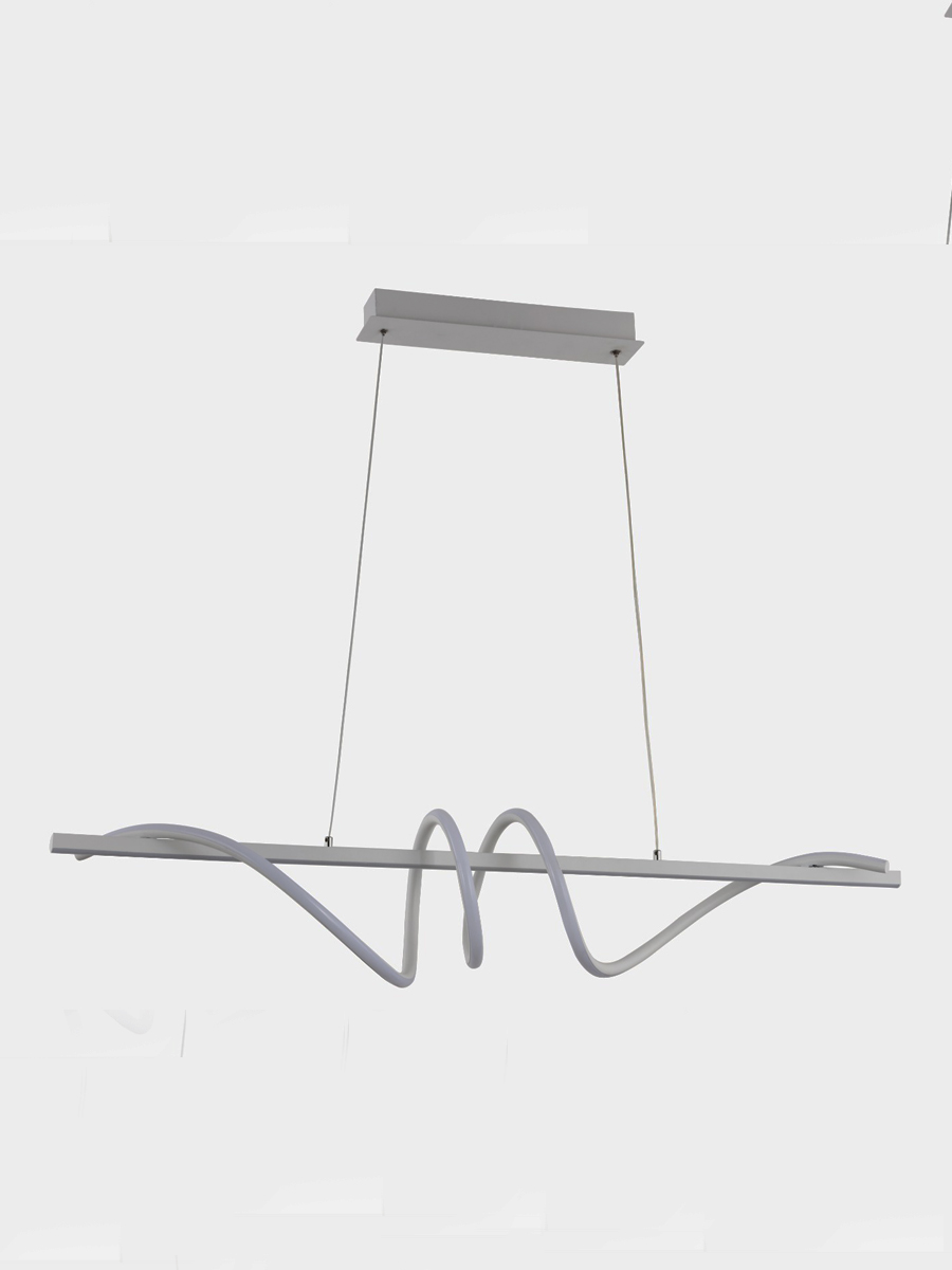 Металлическое основание потолочной люстры окрашено в белый цвет. Плафон люстры выполнен из сплава алюминия с цинком и окрашен в цвет основания. Светодиодные источники света закрыты белым акрилом.