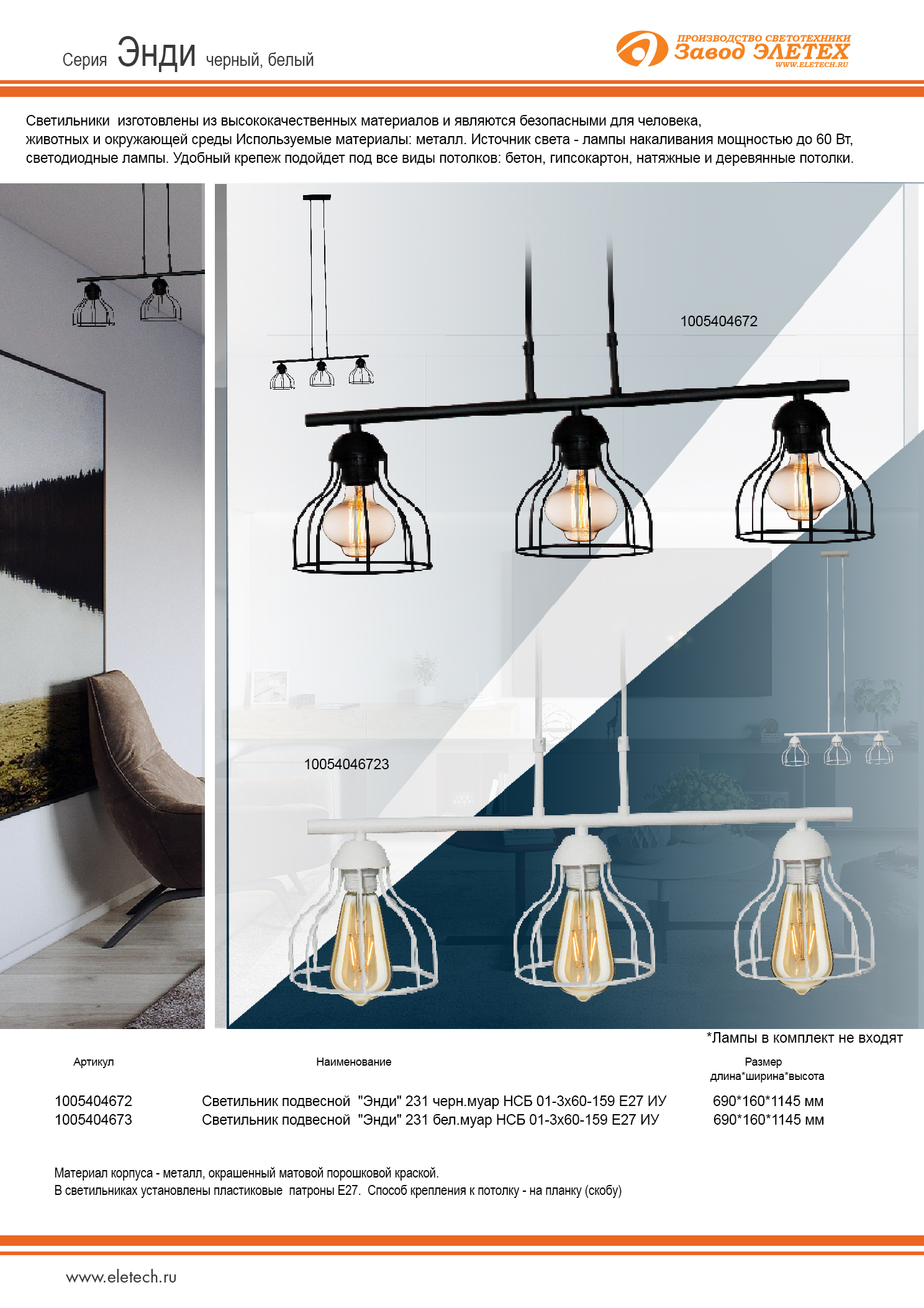 Купить "Подвесной светильник Элетех энди 1005404672"