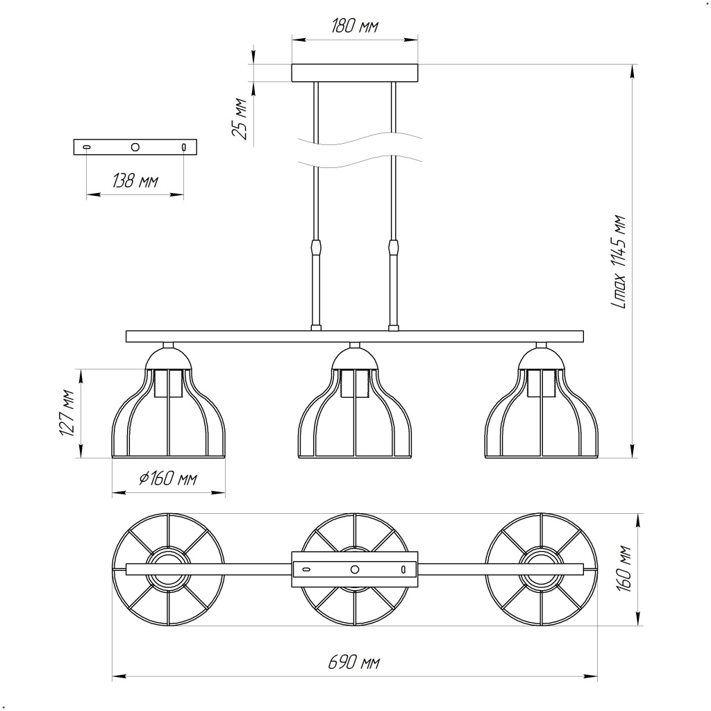 Лаконичный подвесной светильник привлечет внимание любого! Плафон светильника изготовлен из металлических прутьев, а высоту светильника вы с легкостью сможете отрегулировать именно под вашу высоту потолка. Источник света - лампы накаливания мощностью до 60 Вт, светодиодные лампы, энергосберегающие лампы. Цоколь лампы Е27. Рекомендуемая площадь освещения - 10-15м2. Люстра гармонично дополнит интерьер дома, кафе или офиса в стиле Лофт, идеально вписавшись в концепцию дизайна. Особое внимание предлагаем обратить на применение в данных светильниках филаментных ламп, их теплый, мягкий свет создаст по-настоящему уютную и домашнюю атмосферу. Лампы в комплект не входят. Данную модель 1005404672 можно купить в интернет - магазине 220svet.ru