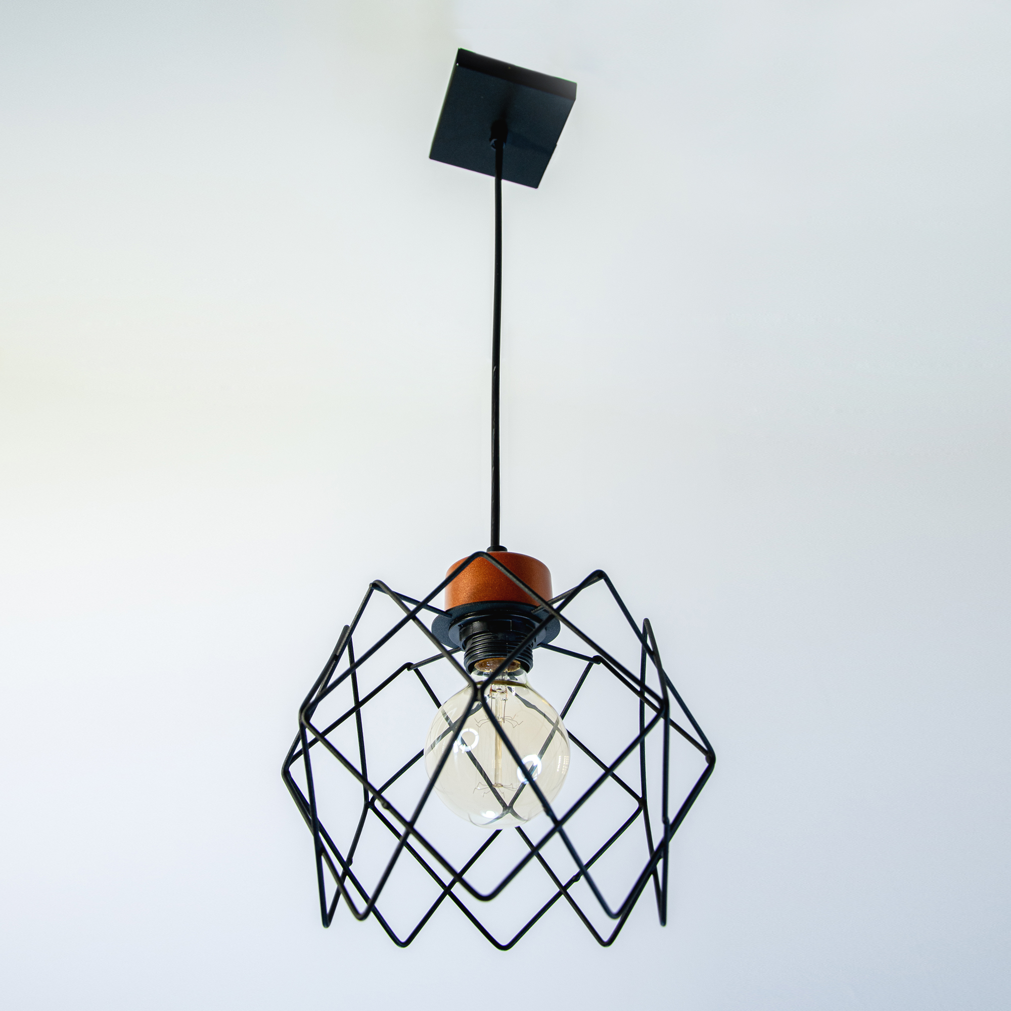 Лаконичный подвесной светильник привлечет внимание любого! Плафон светильника изготовлен из металлических прутьев, а высоту светильника вы с легкостью сможете отрегулировать именно под вашу высоту потолка. Люстра гармонично дополнит интерьер дома, кафе или офиса в стиле Лофт, идеально вписавшись в концепцию дизайна. Для данных светильников могут применяться как стандартные лампы накаливания, светодиодные, энергосберегающие КЛЛ, так и светодиодные филаментные лампы с цоколем Е 27 и мощностью 60Вт. Особое внимание предлагаем обратить на применение в данных светильниках филаментных ламп, их теплый, мягкий свет создаст по настоящему уютную и домашнюю атмосферу. Данную модель 1005404793 можно купить в интернет магазине 220svet.ru