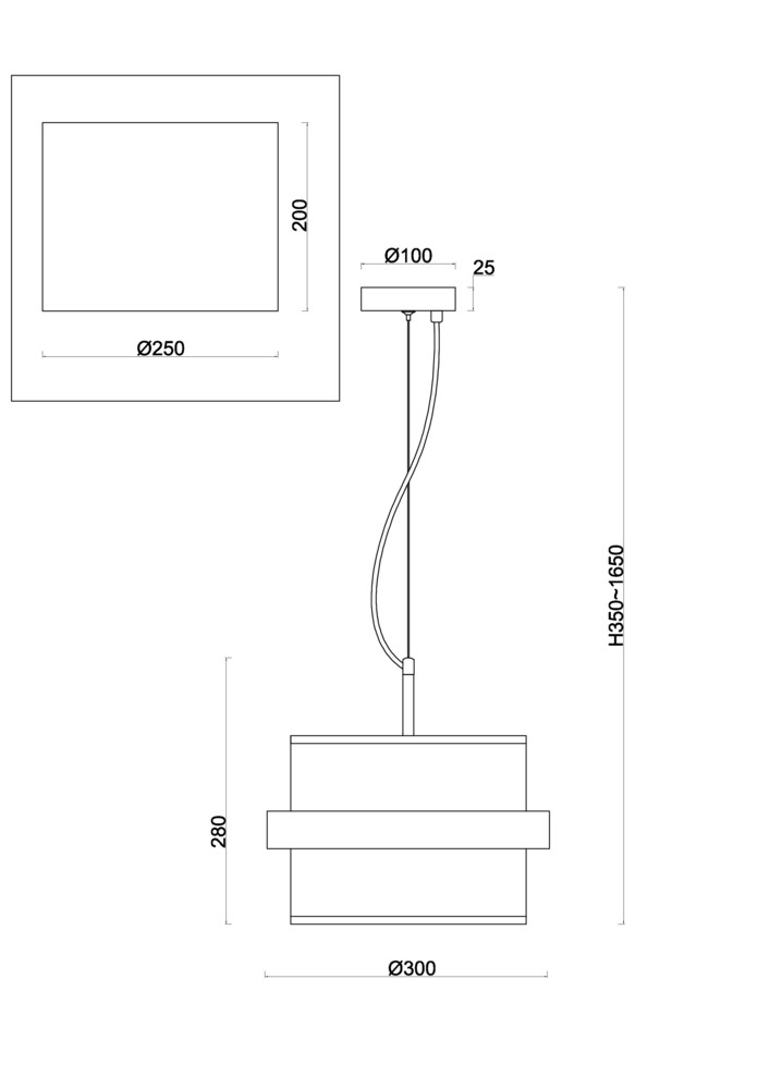 - Высота плафона (абажура): 200