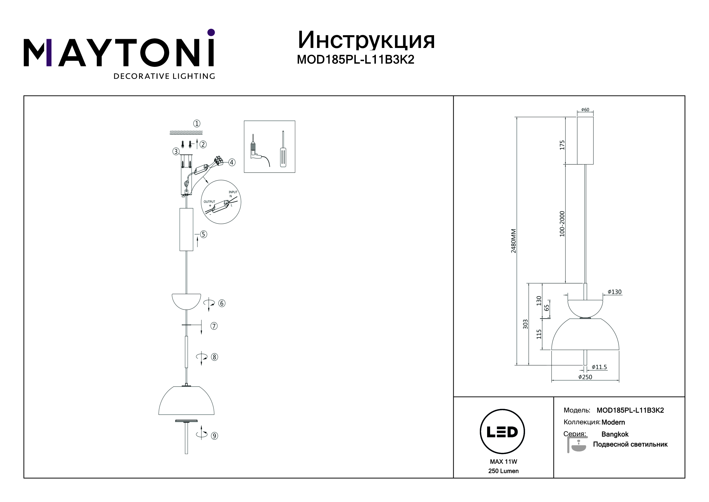Данную модель MOD185PL-L11B3K2 с быстрой доставкой спешите купить по цене 18 990 ₽ в магазине 220svet.ru