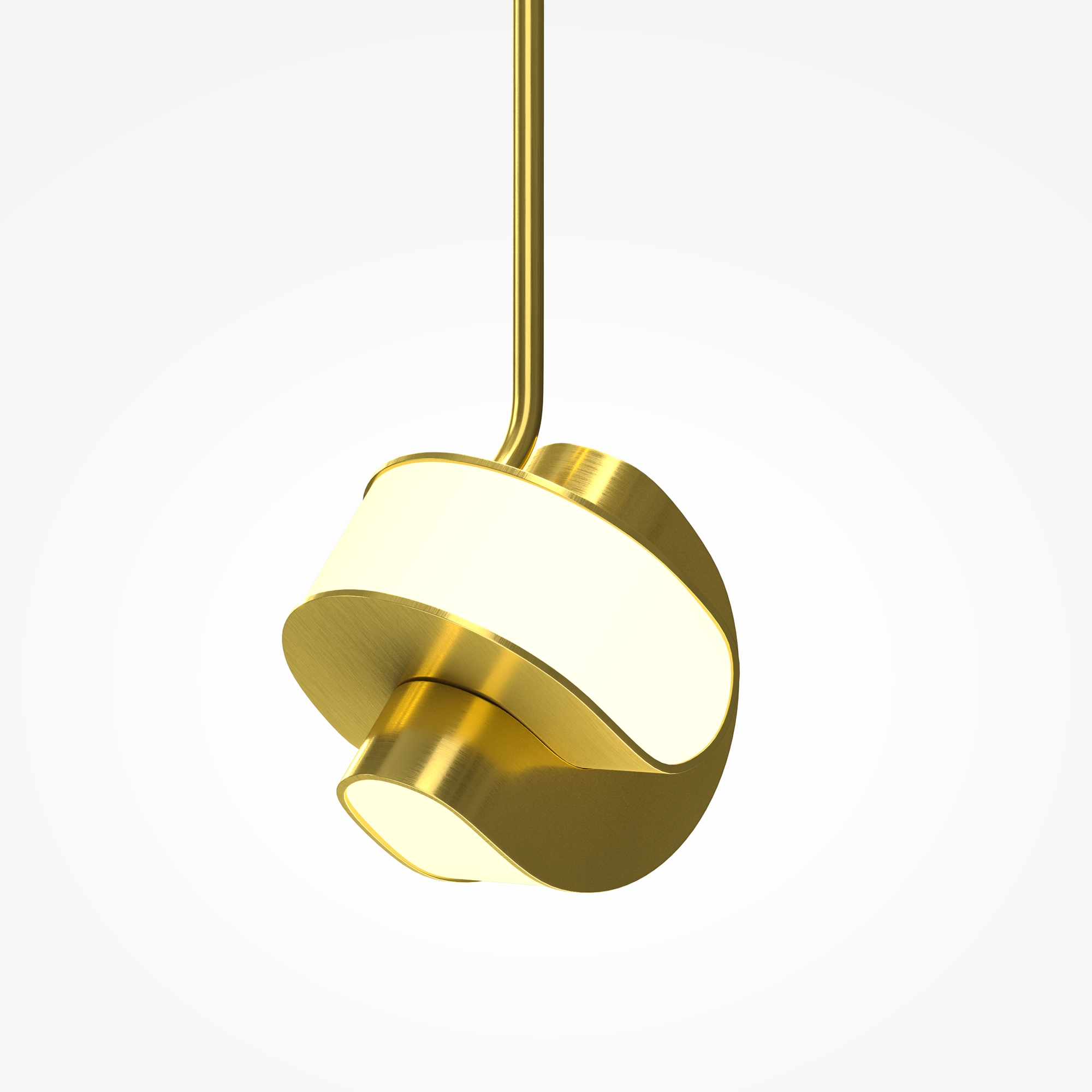 Динамичный дизайн с футуристичной эстетикой, сочетание двух полусфер. Арматура: алюминий цвета сатинированной латуни. Рассеиватель: матовый акрил, установленный заподлицо. Магнитная потолочная чаша без видимых креплений. Два источника света для равномерного верхнего и нижнего освещения. Трехступенчатый переключатель температуры (2700K-3000K-4000K). Рекомендуется для одиночного использования и композиций с разной высотой подвеса. Создает объемное многосценарное освещение.