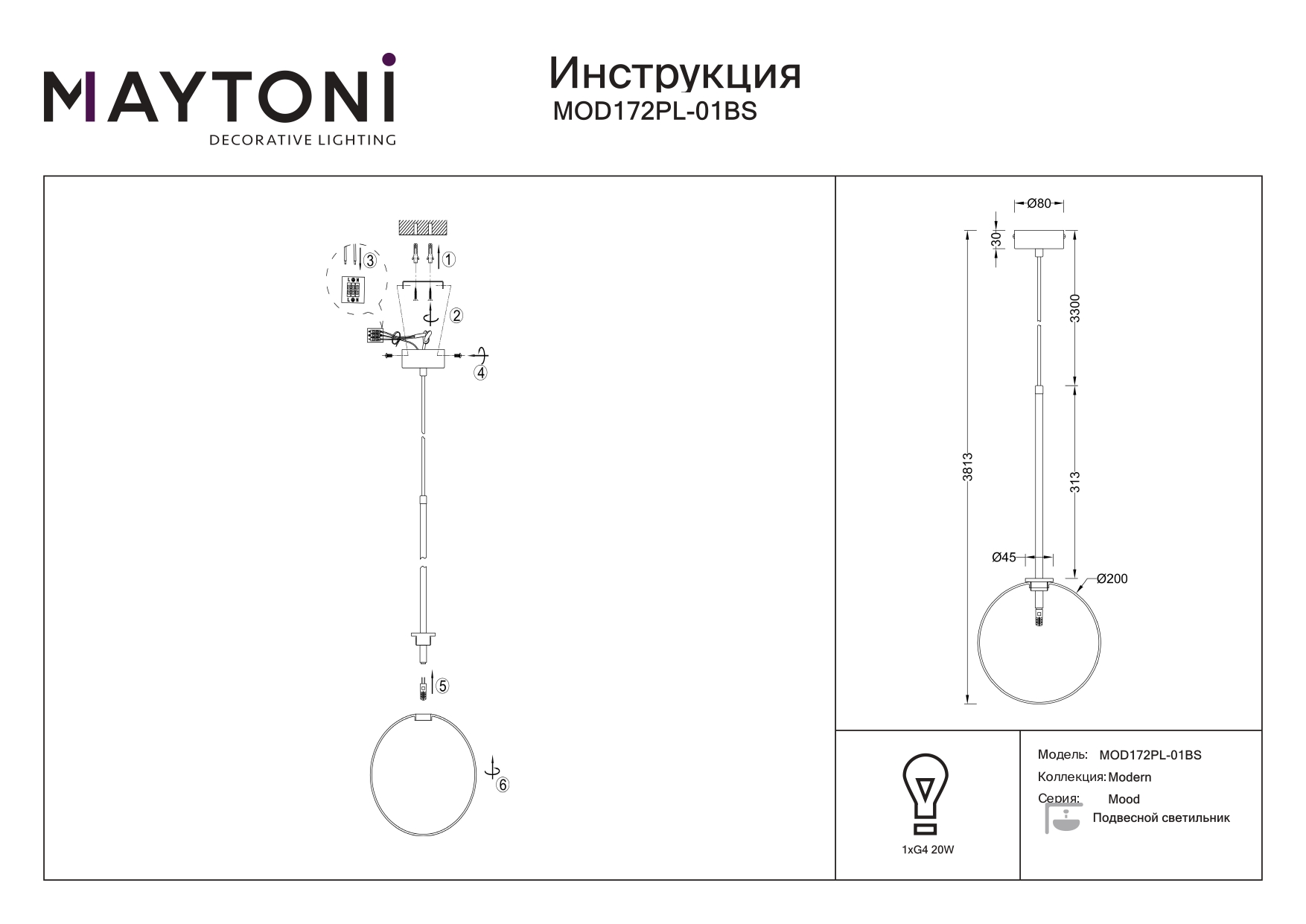 Купить "Подвесной светильник Maytoni Mood MOD172PL-01BS"