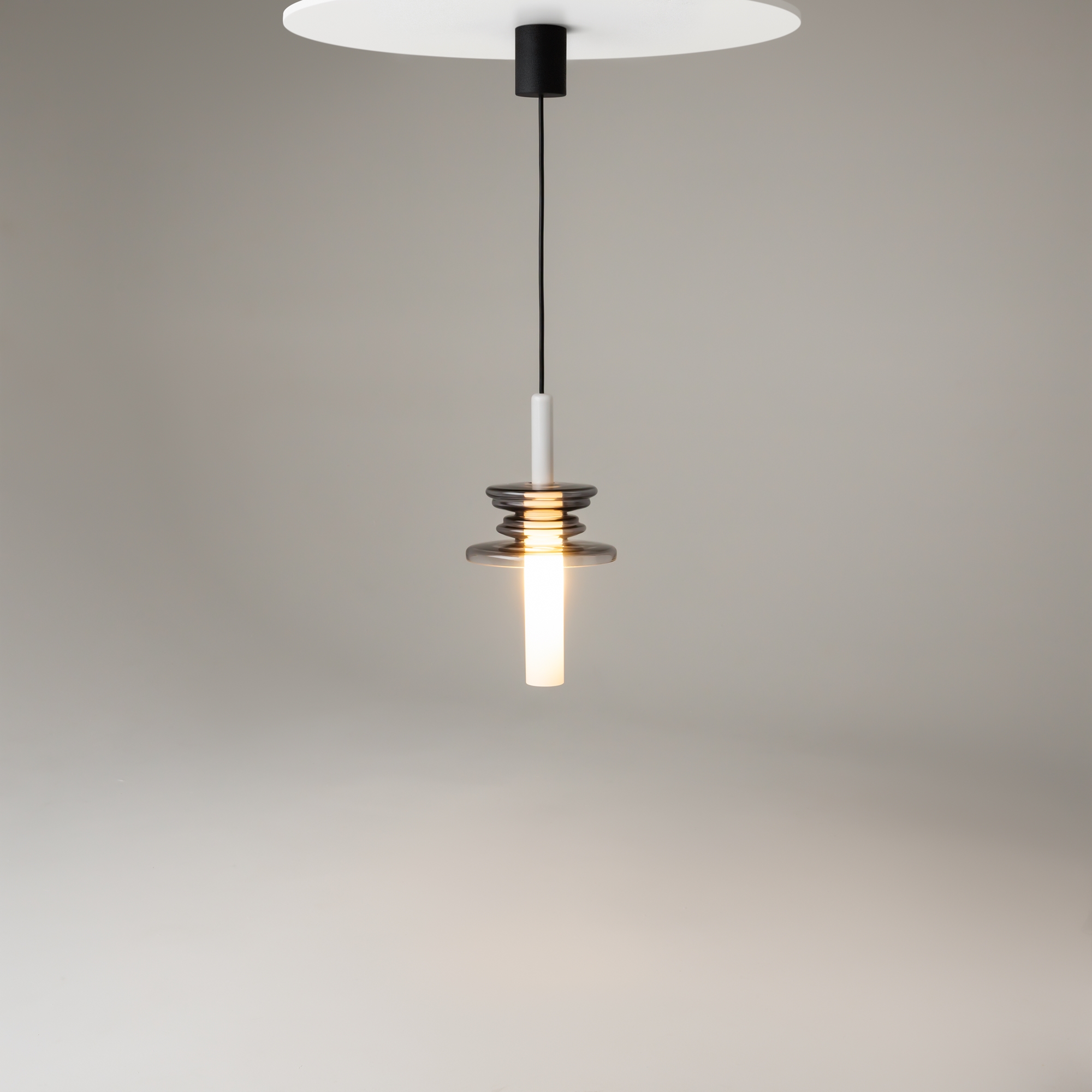 Уникальная многослойная конструкция в образе звуковой волны. Магнитная потололчна чаша из металла без видимых креплений. Плафон-трубка из белого полупрозрачного стекла. Декоративный волнообразный "звуковой" элемент из литого стекла в центре плафона. Цвета - синий, черный, золото, серый. Источник света в центе плафона-трубки - лампа с цоколем G9.