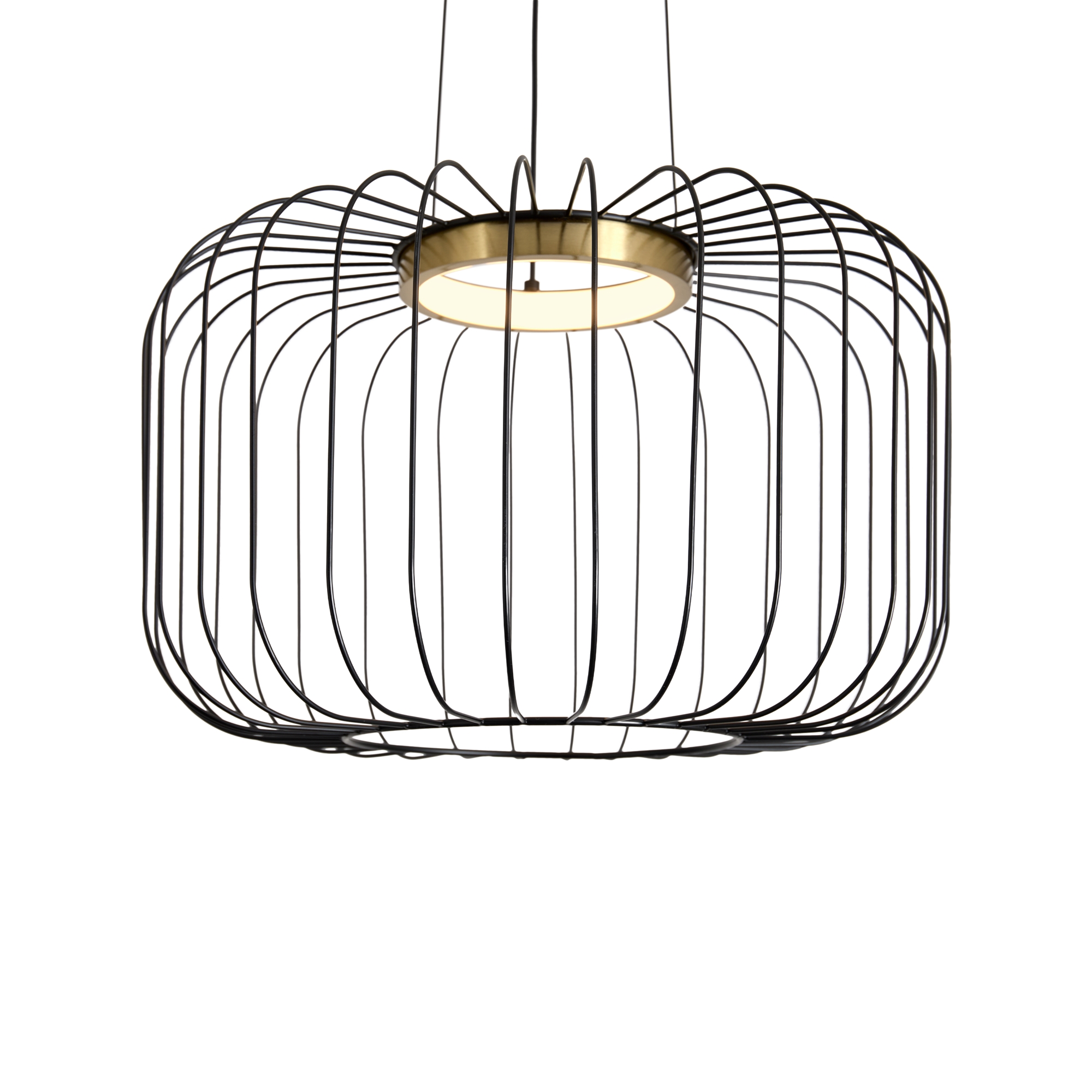 Металлическая арматура чёрного цвета. LED-источник света обрамлен декоративным металлическим кольцом цвета латунь. Минималистичный дизайн - хорошо сочетается с другими осветительными приборами. Высота подвеса регулируется. Цветовая температура - 3000К.