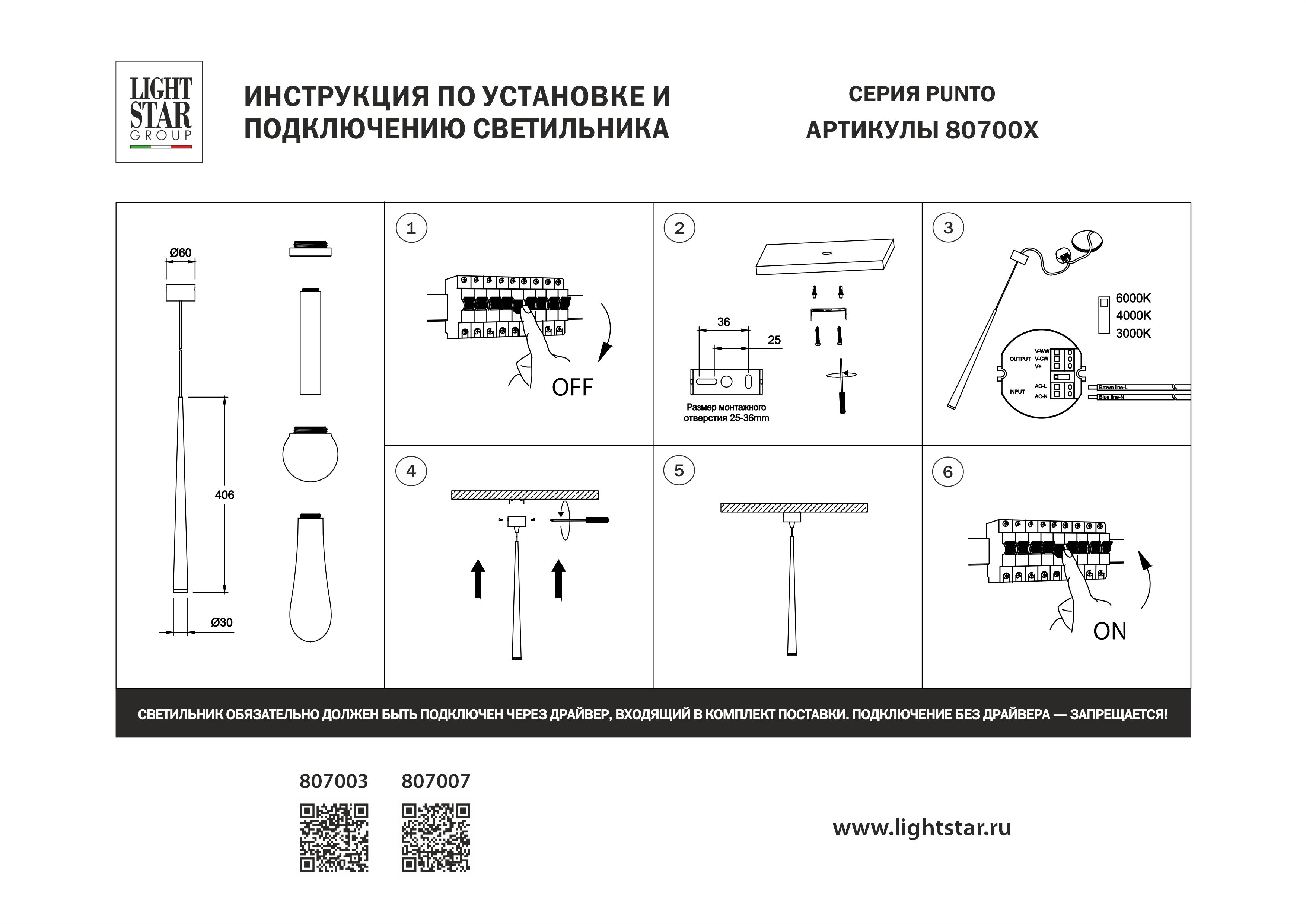 - Цветовая температура, K: 3000/4000/6000