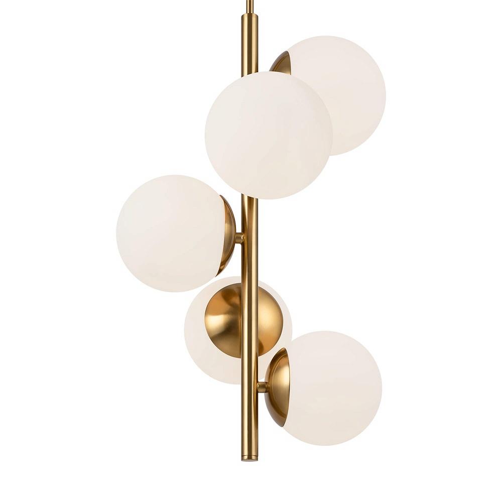 Подвесной светильник Zing FR5199PL-05BS1 — это элегантное и функциональное решение для вашего интерьера. Он выполнен в стиле модерн и станет ярким акцентом в гостиной или спальне. Осветительный прибор имеет размеры 300 мм х 1018 мм и оснащён 5 источниками света с типом цоколя E27 мощностью по 60 Вт каждый, при этом общая мощность устройства равна 300 Вт. Корпус и плафоны изготовлены из металла и стекла, а цветовая гамма включает белый и латунный оттенки. Степень пылевлагозащиты IP20 гарантирует безопасное использование светильника внутри помещений. Тип подвеса штанга.