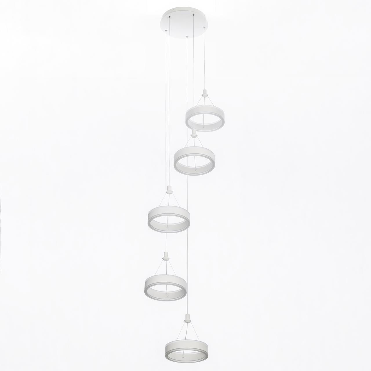 Светодиодный каскадный светильник CL719050 , страна бренда Дания , производитель Citilux относится к коллекции Дуэт выполнен в современном стиле. Корпус металлический, цвет белый матовый. Светильник состоит из круглого основания и пяти подвесных колец. Кольцо - светодиодный модуль, изготовленный из алюминиевого профиля, рассеиватель из оптического полимера. Наличие источников света с двух сторон профиля позволяет равномерно осветить всё помещение. Изделие оснащено встроенным ступенчатым диммером, три уровня яркости – 100-40-15%, управляется обычным настенным выключателем. Мощность 100Вт, цветовая температура 4000К - нейтральный белый свет без мерцания и пульсаций. Крепление подходит для всех видов потолков, в том числе натяжных, тип крепления – планка. Купить модель CL719050 спешите в интернет магазине 220svet.ru